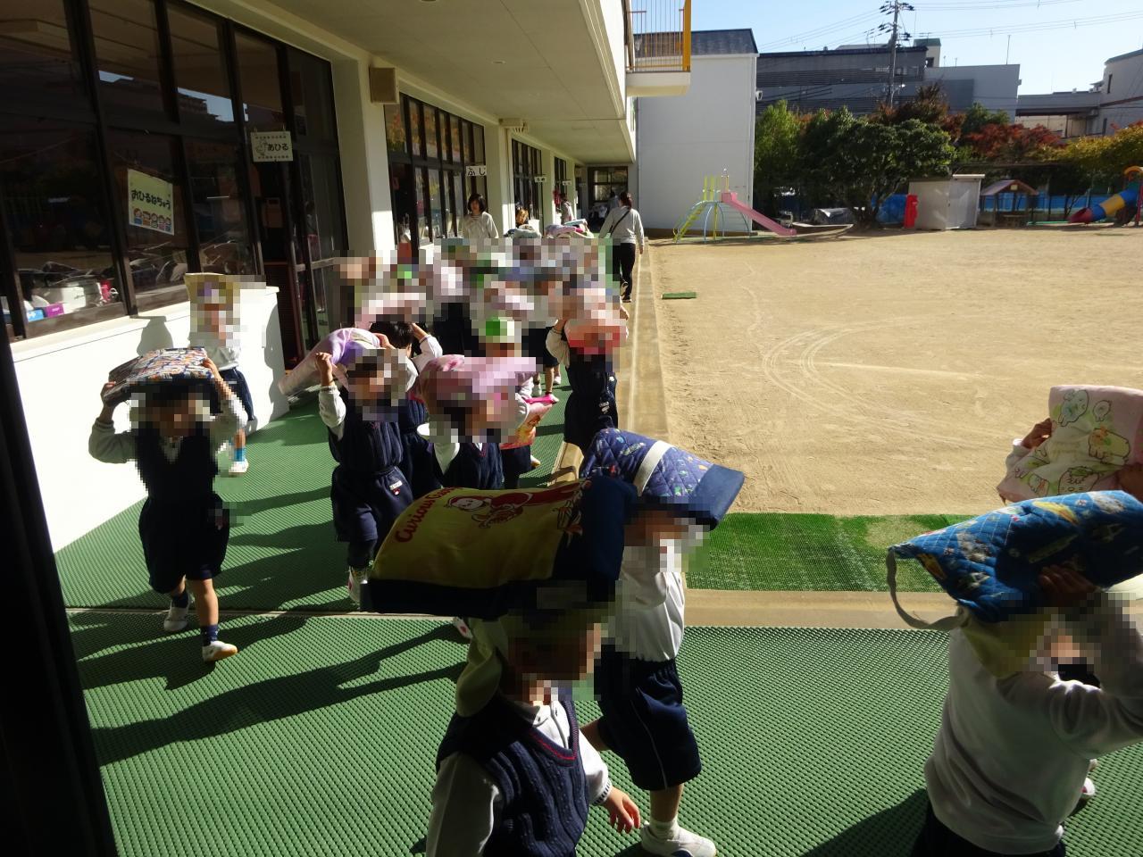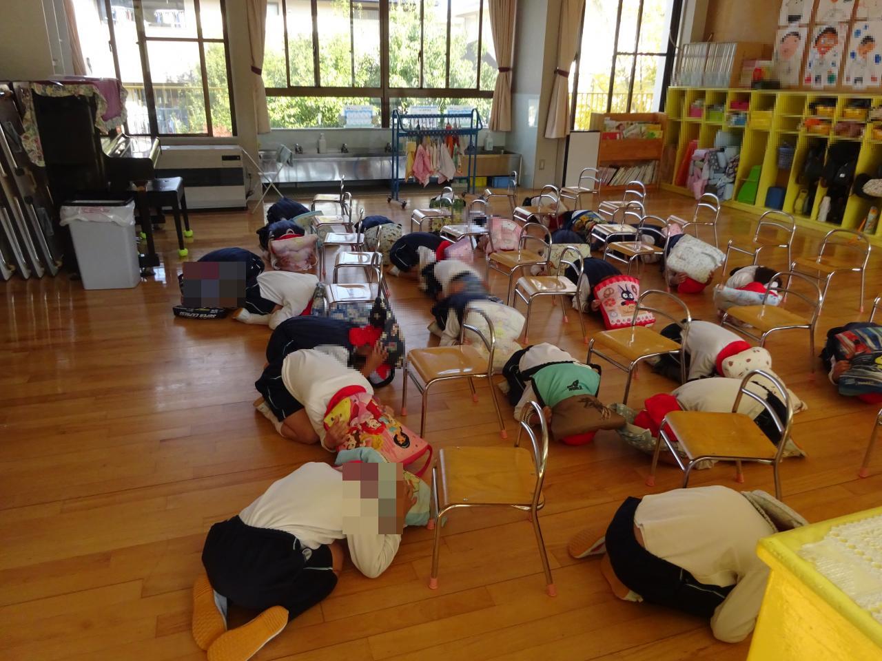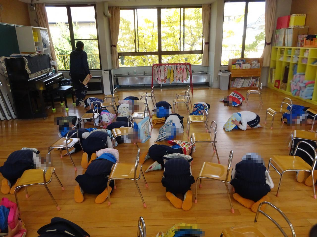 サイレンが鳴ると子どもたちはすぐに自分の身を守る行動ができていました!