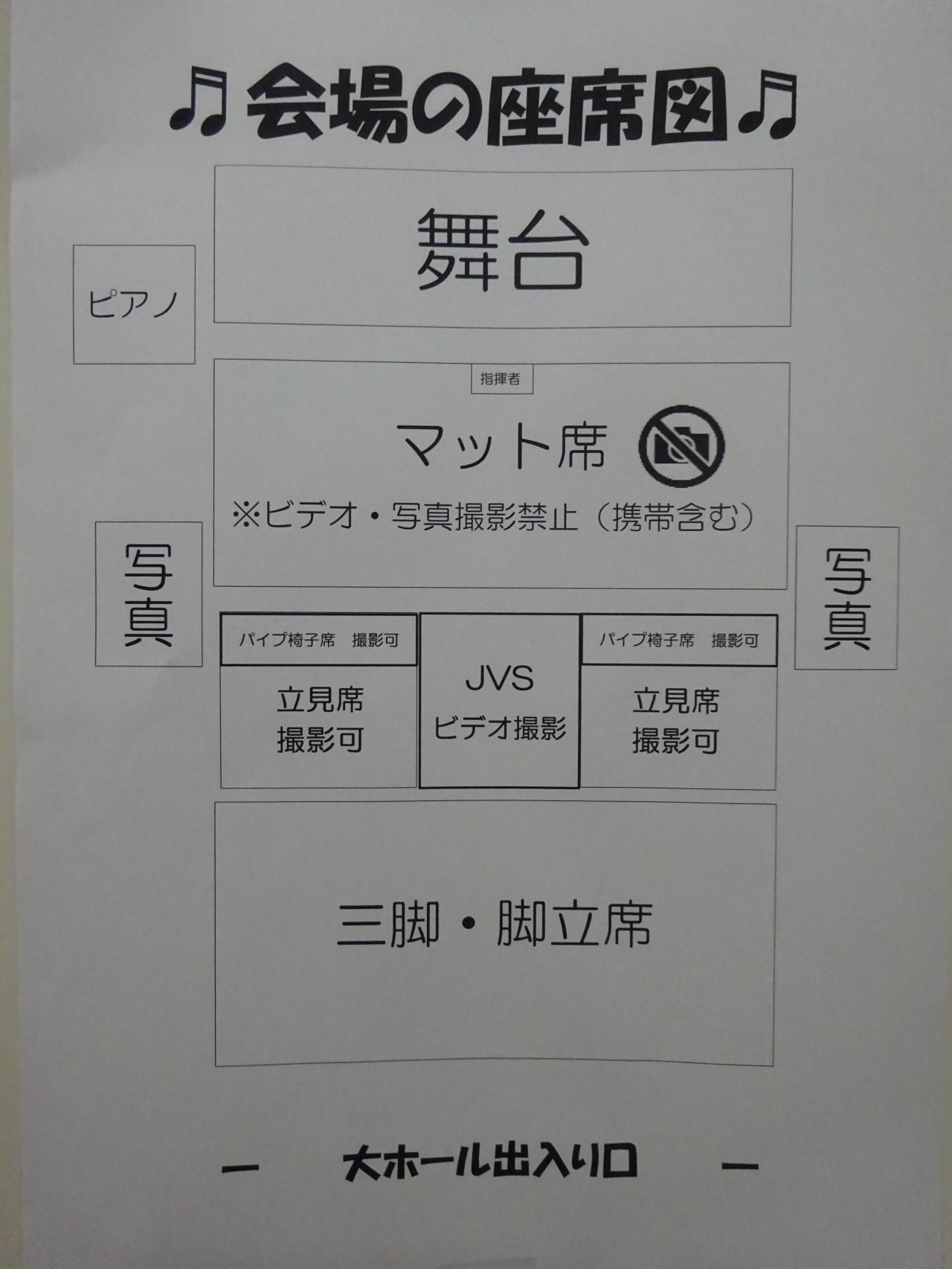 少しでも撮影をして頂きやすいよう、今年度の音楽会では、立ち見席の1列目にパイプ椅子席を設置しております。