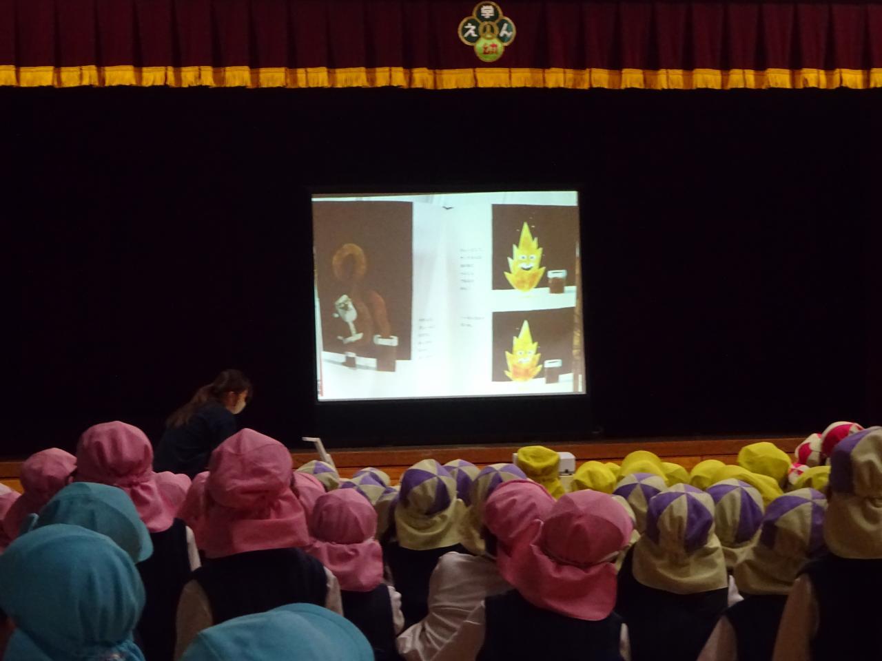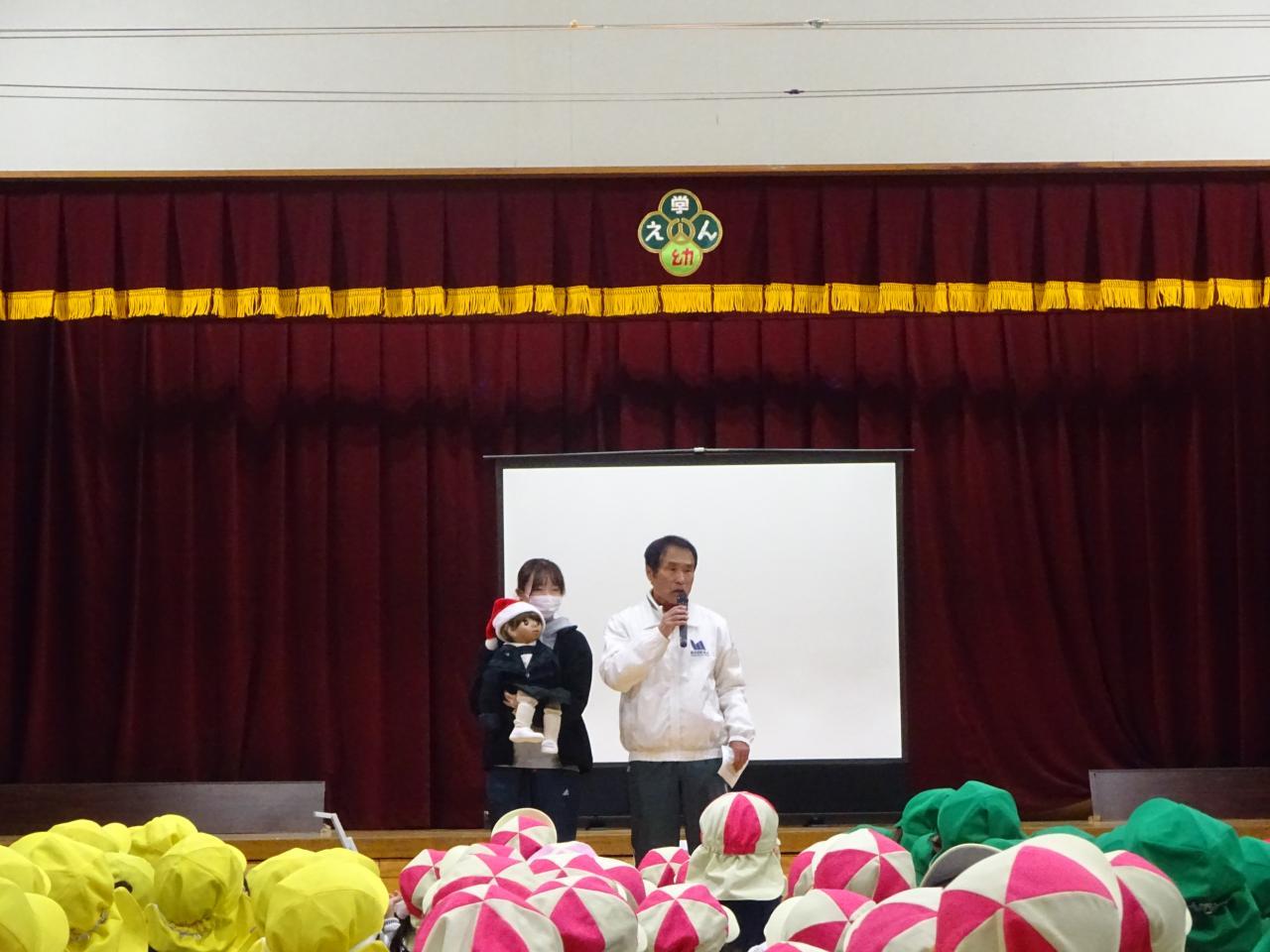 大ホールではサンタさんの到着を待ちながら、園長先生のお話を聞いたりサンタさんの絵本を見ました!