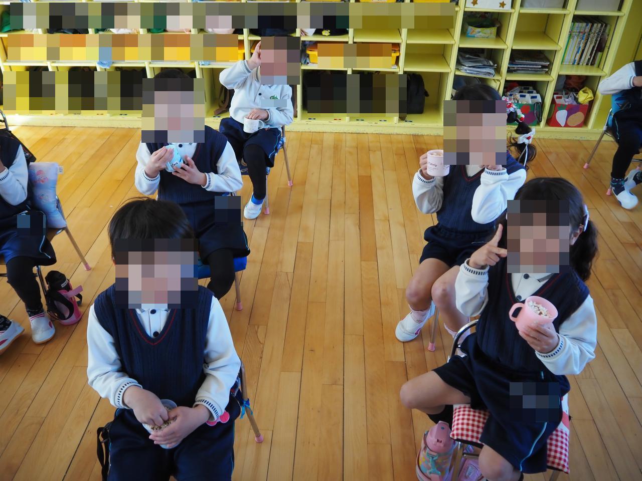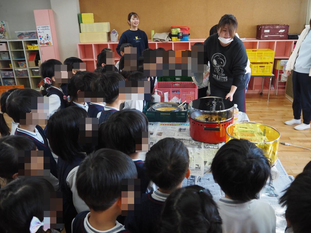 ポップコーンができる様子を見ることができ、子どもたちは「いい匂いがする!」「早く食べたいな~」と