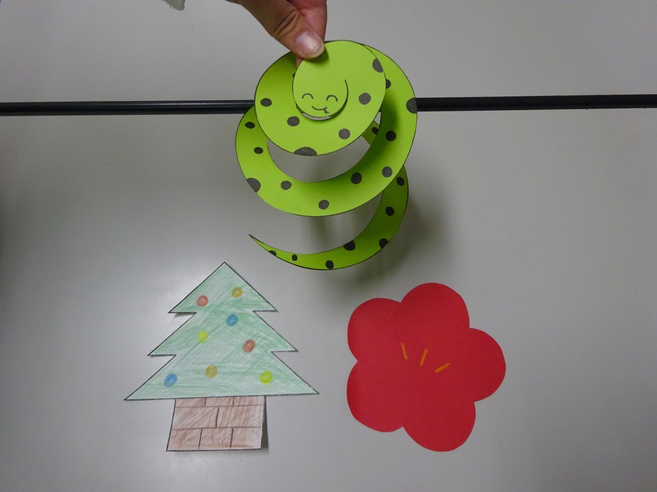 クリスマスツリー、へび、梅の花を作ってみて下さい✨