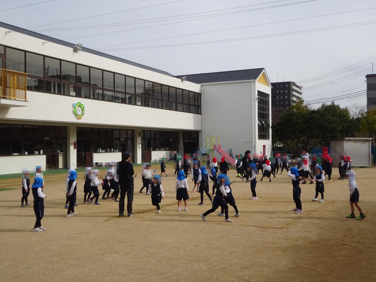 終業式の後は、戸外遊びで元気に身体を動かし遊びました😄