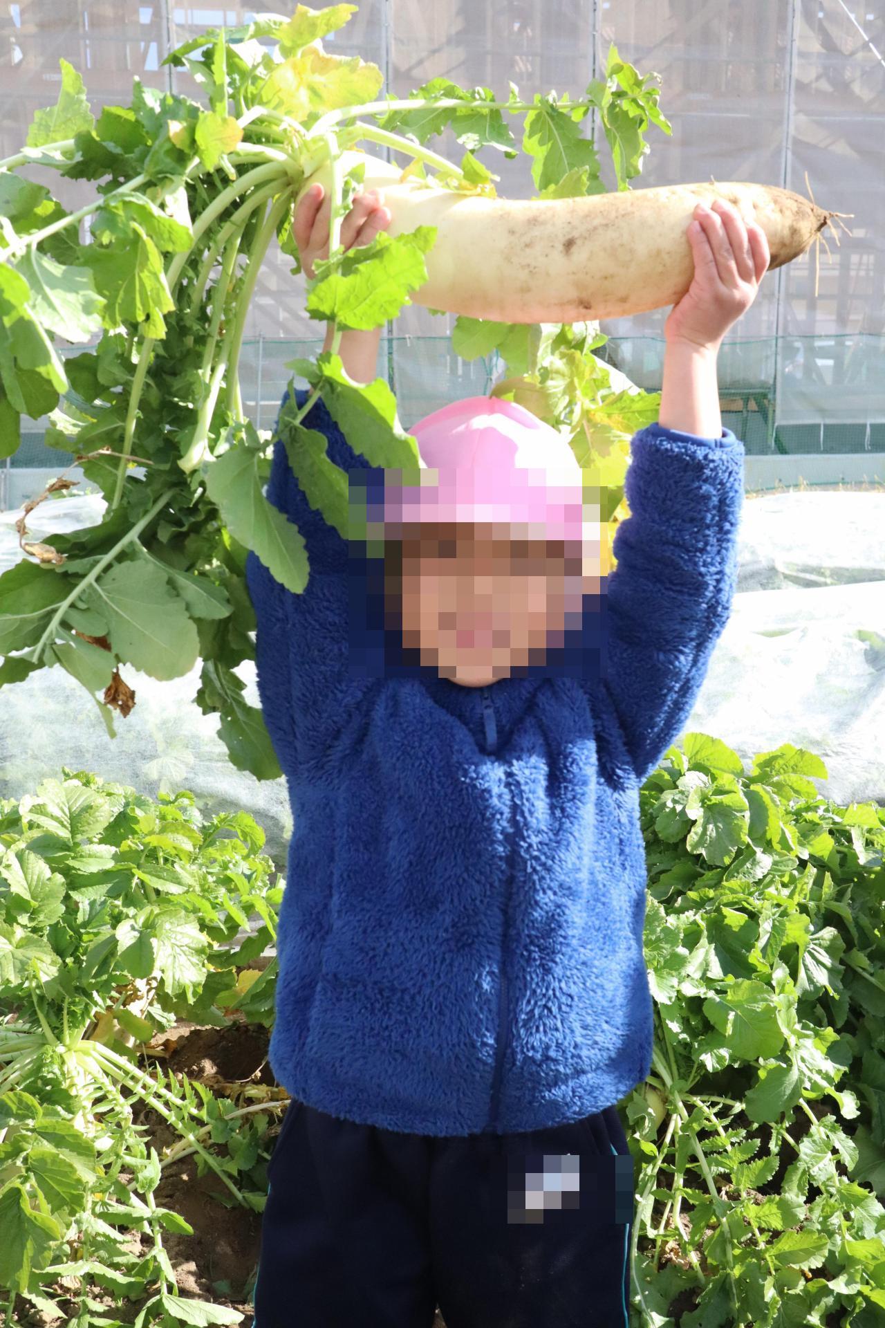 畑に着くと、大きな大根がたくさんあり子どもたちは大喜び🤩