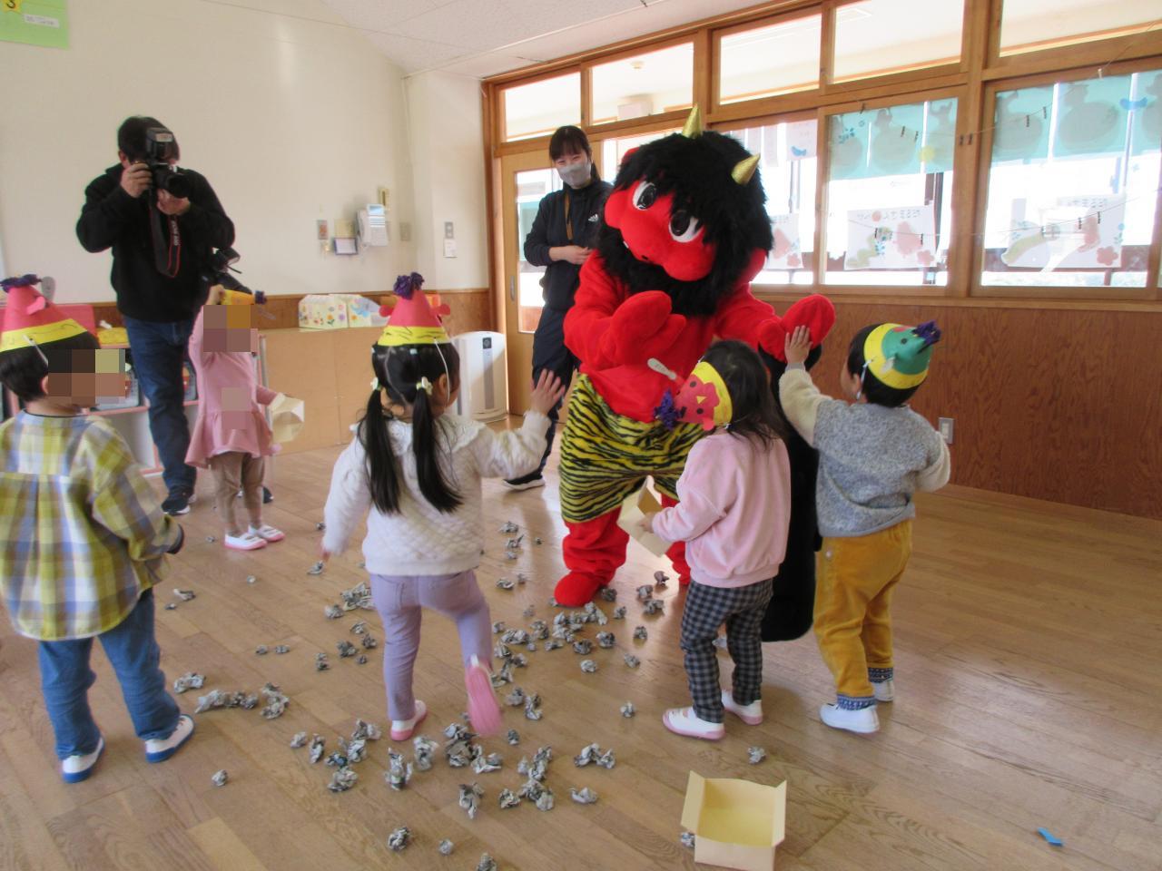 子どもたちは顔を引きつらせつつも勇敢に鬼と戦い、お腹の中の鬼も追い払うことができました😆