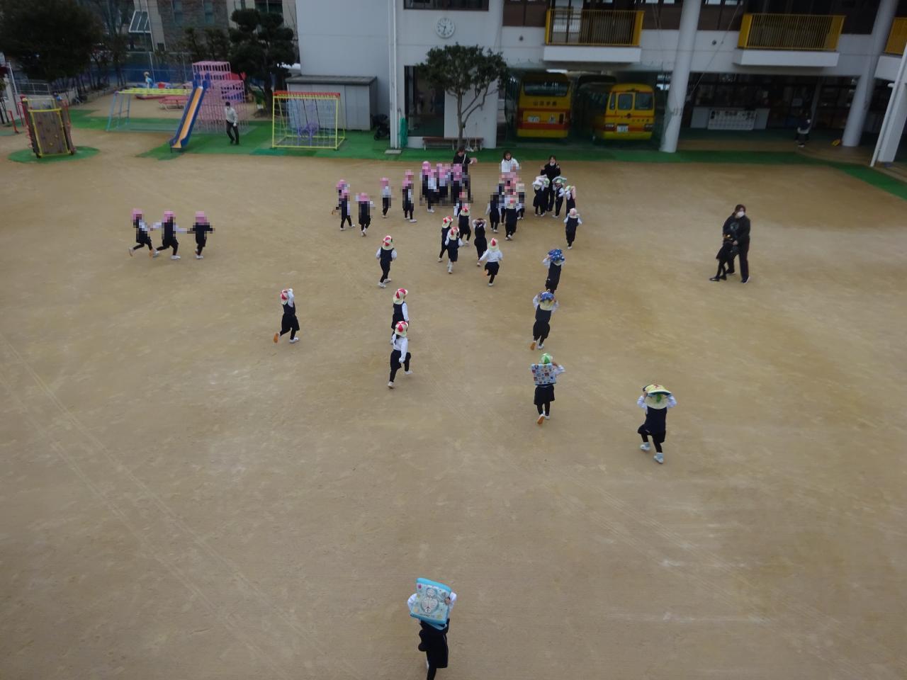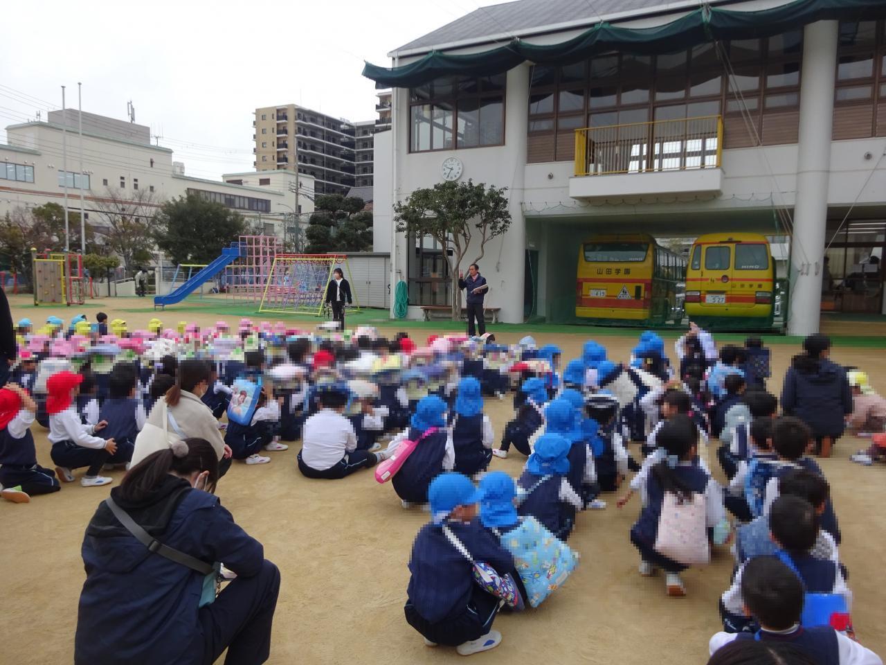 その後避難方法を聞き、すぐに園庭に避難しました!