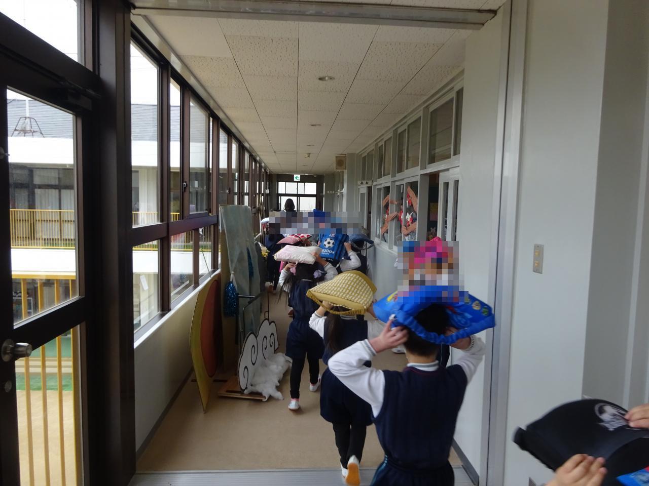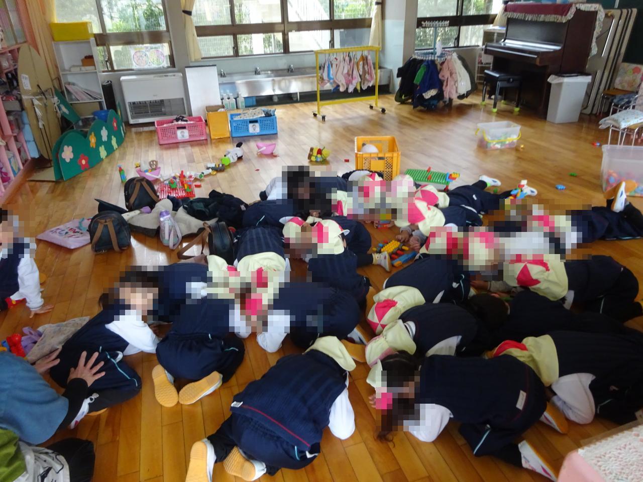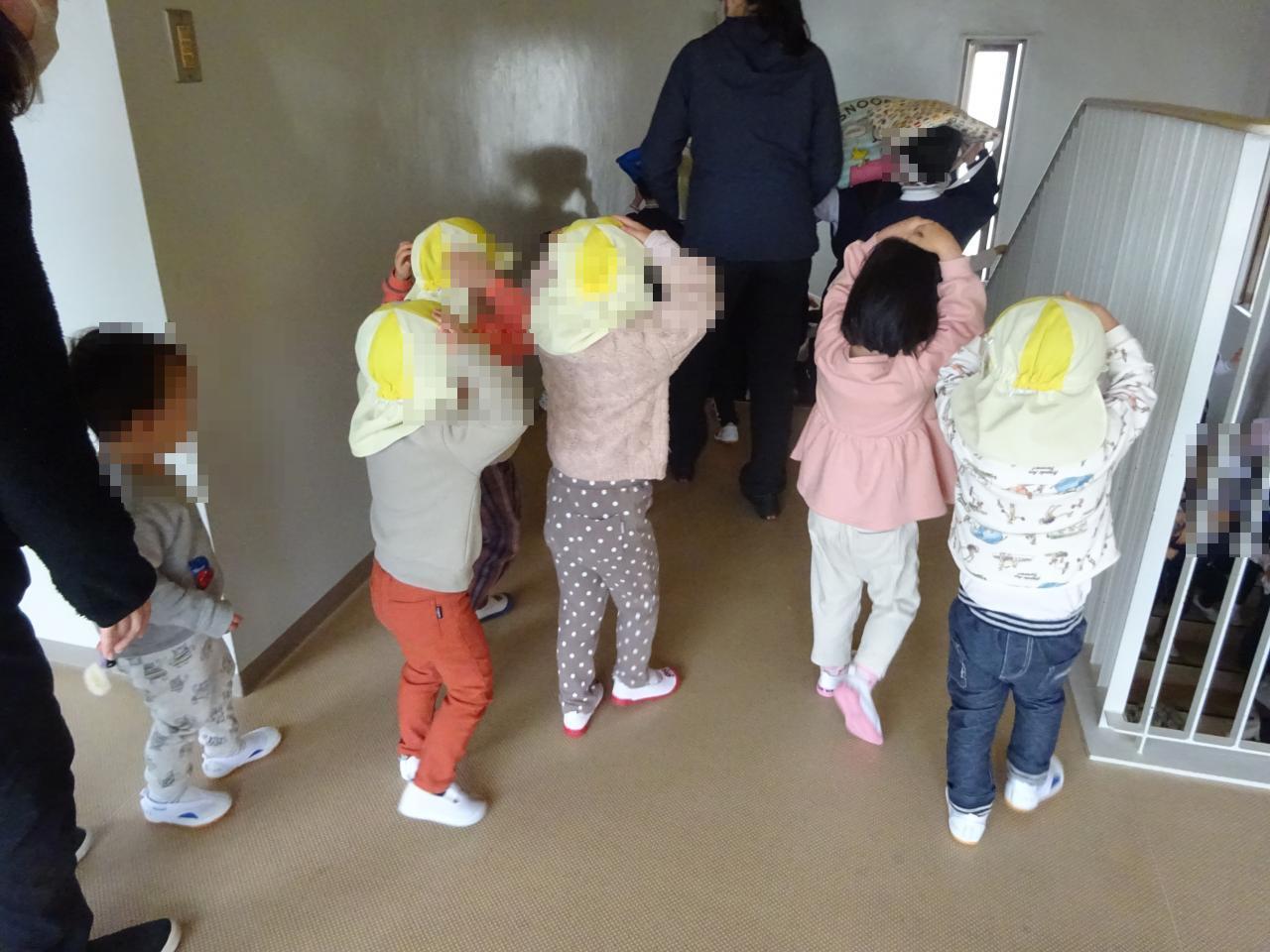 地震と火災が起こったことを園長先生の放送で知ると、子どもたちで考えて自分の命を守る行動ができていました👏
