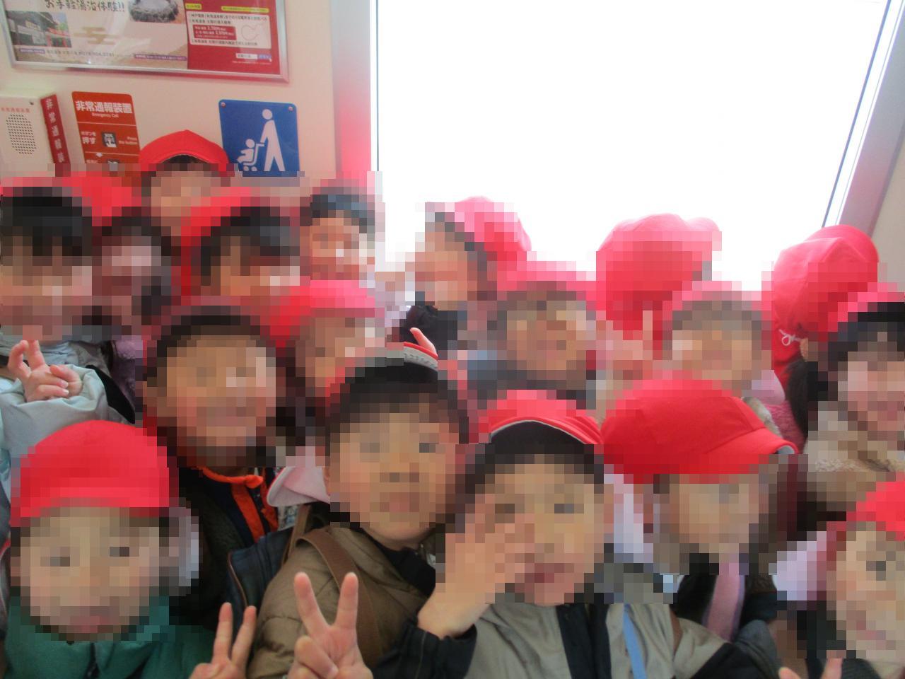 倒れないようにしっかり踏ん張りながら電車に乗りました😄みんなでくっついて乗る子どもたちの姿はとても可愛らしかったです💕
