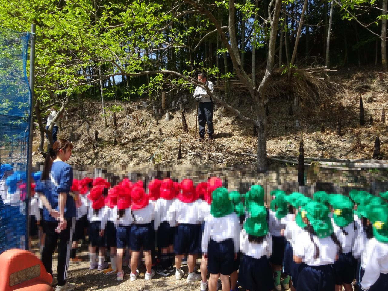 クラス帽子はたけのこ見学で使用したため、本日帽子を持ち帰っております。明日必ず被って登園して下さい。