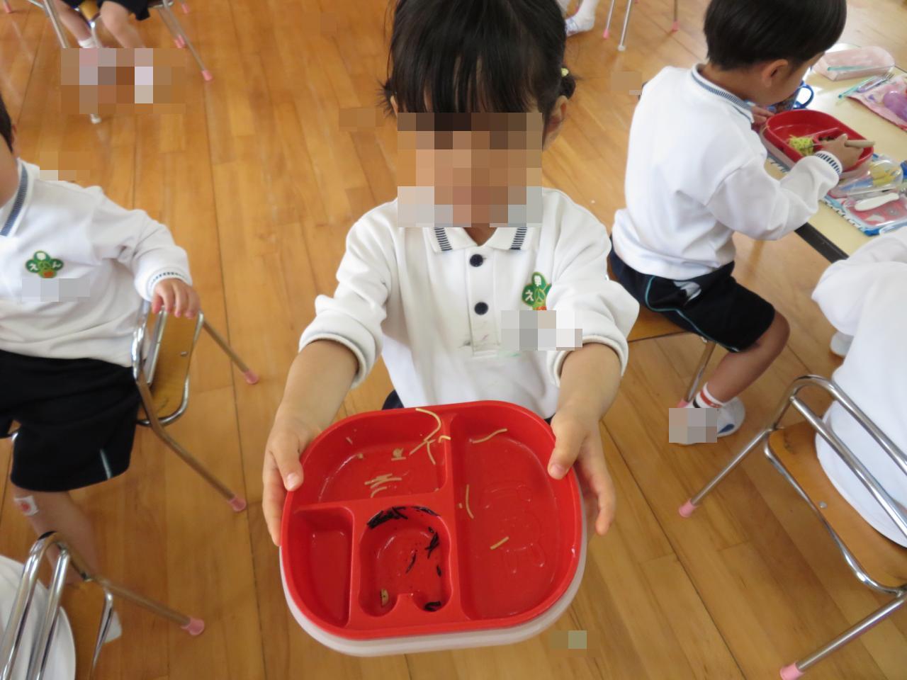 苦手なものも一口取り組む様子が見られ、完食できた喜びを感じることができたお友達もたくさんいました😋