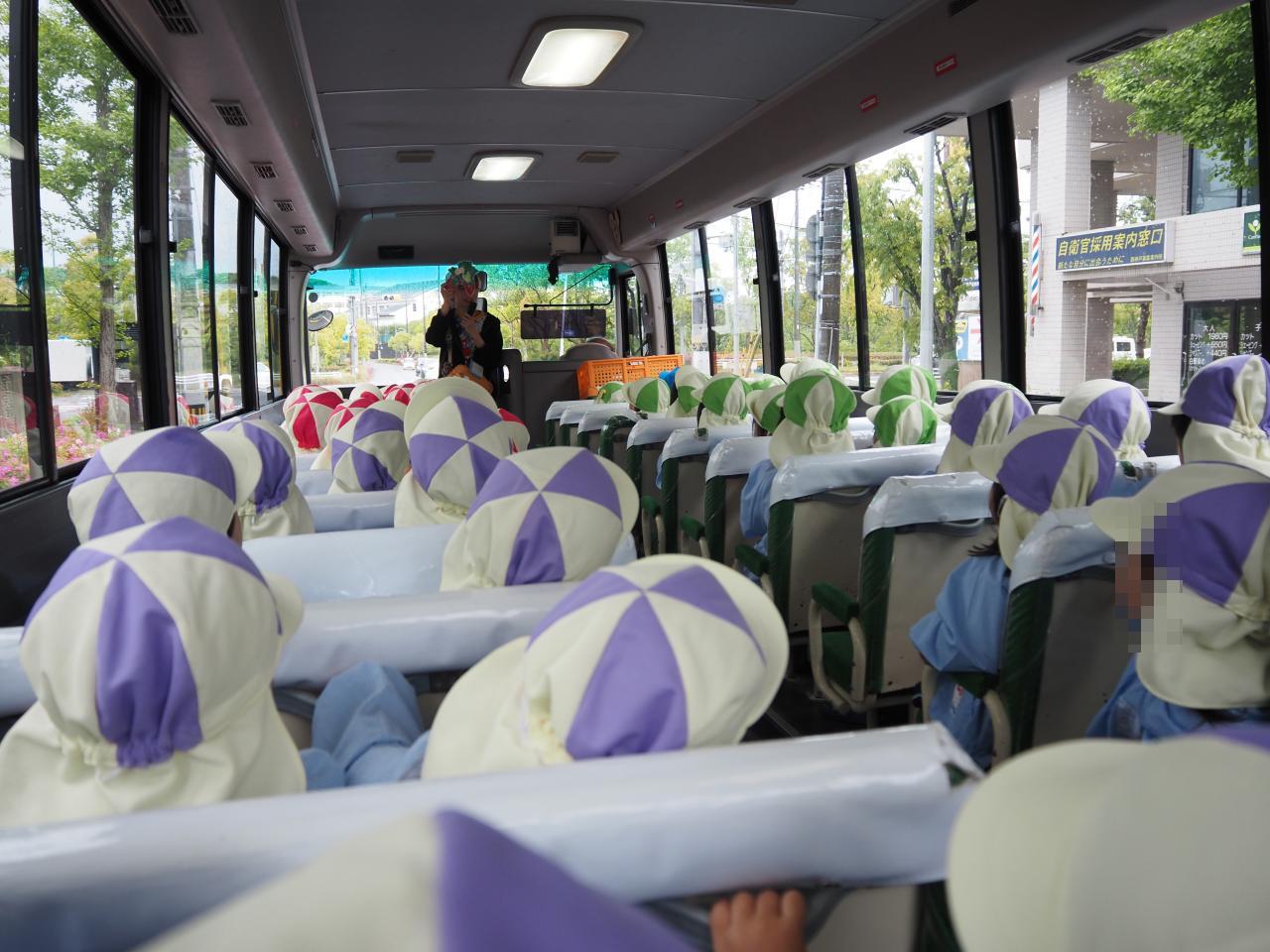 初めてバスに乗ってお出かけできることにワクワクがとまらない様子で幼稚園を出発🚌