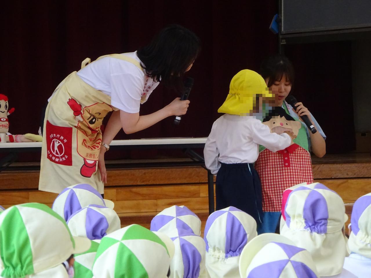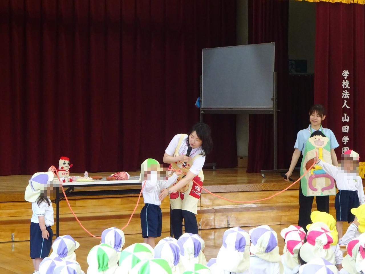 おなかの中が見えるエプロンを使って、「食べ物とおなかの中の仕組み」について学びました❗