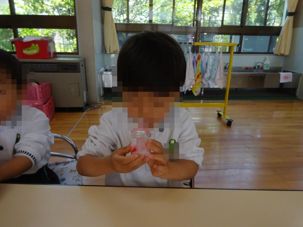 保育室に戻ってからは、みんなでプレゼントで頂いた「ヤクルト」を試飲しました‼