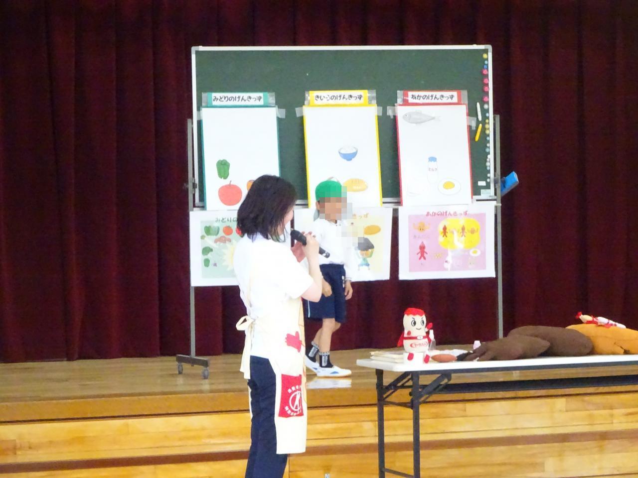 毎日すっきりした排便ができるように、バランスが整った食事が大切ということで、食品カードを用いて、赤(体をつくるもとになる)、黄(エネルギーのもとになる)、緑(体の調子を整えるもとになる)の3色バランスについて学びました!