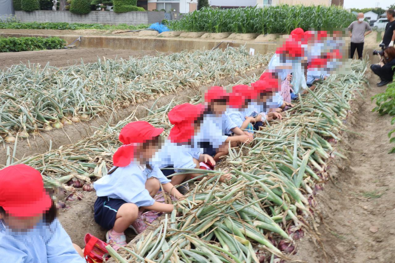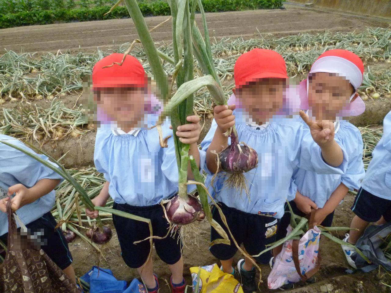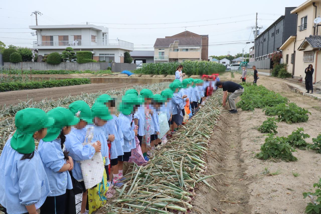 登園後、「今日は玉ねぎ収穫行ける?」「雨降らないかなぁ?」とお天気の心配をしている子どももいましたが、無事出発することができました❗