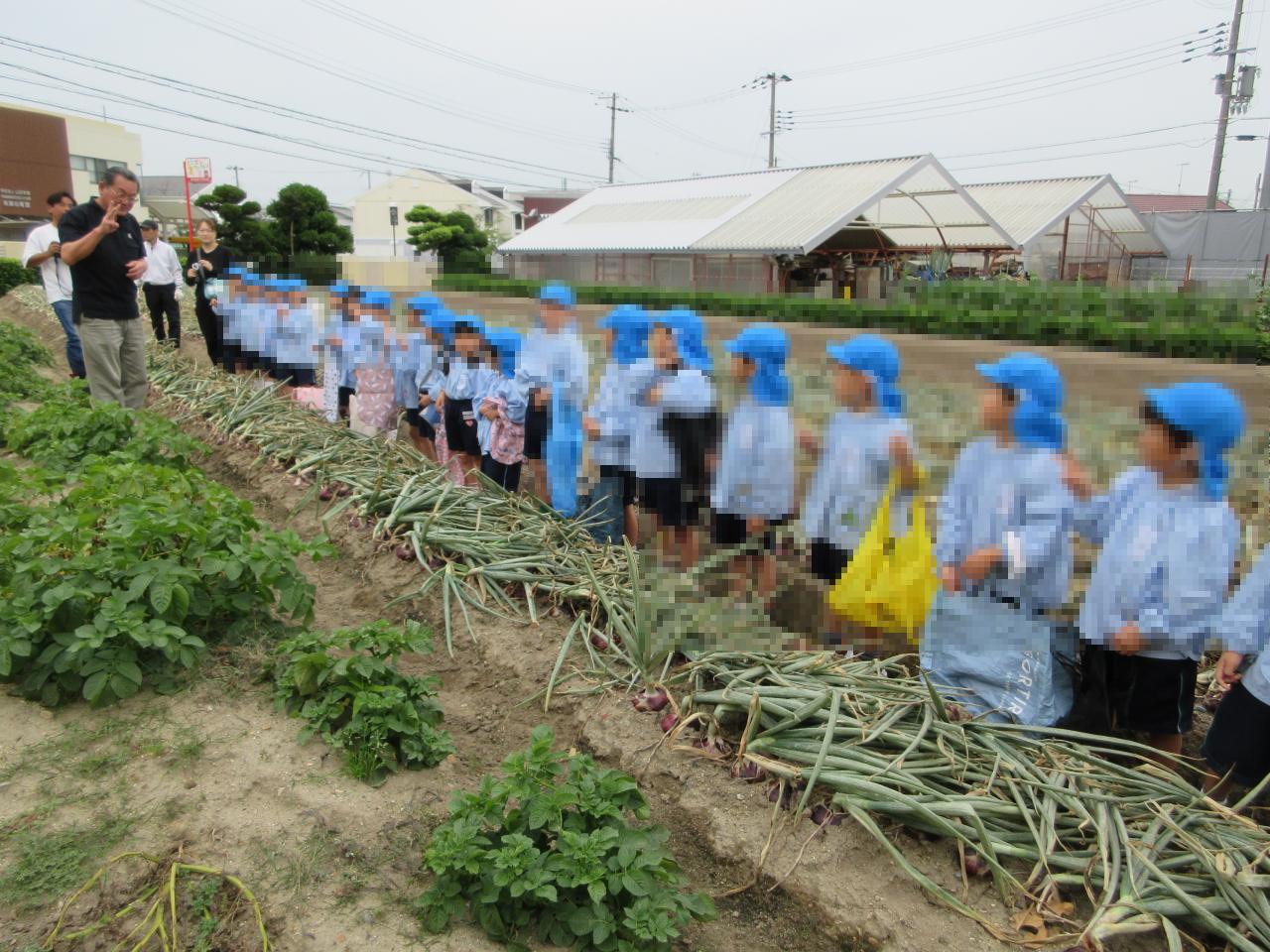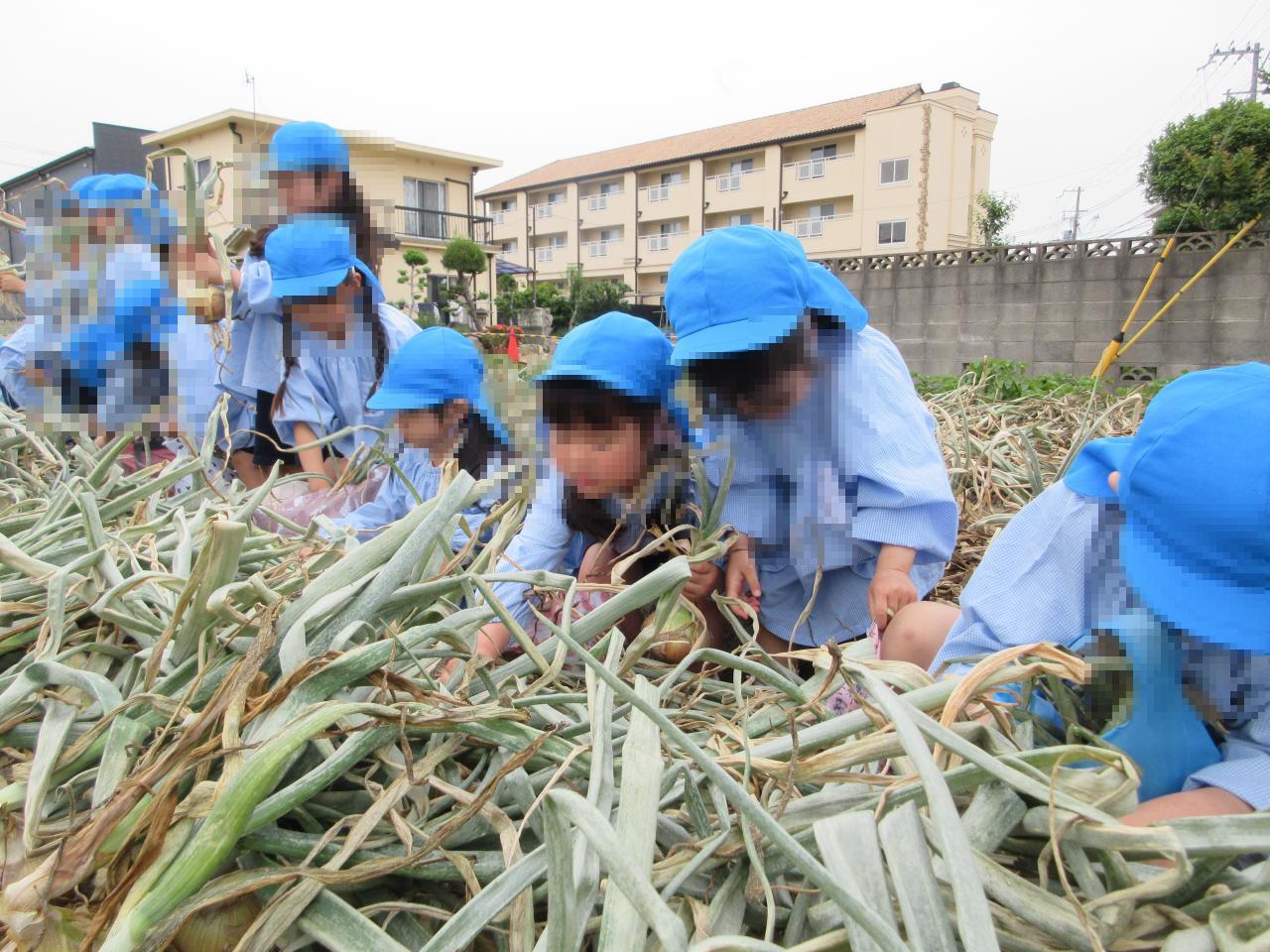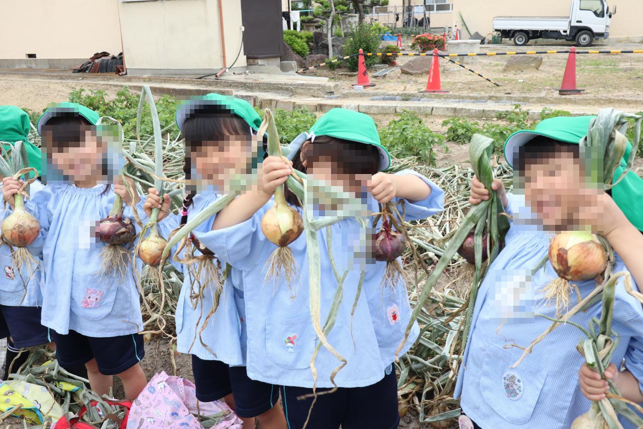 登園後、「今日は玉ねぎ収穫行ける?」「雨降らないかなぁ?」とお天気の心配をしている子どももいましたが、無事出発することができました❗