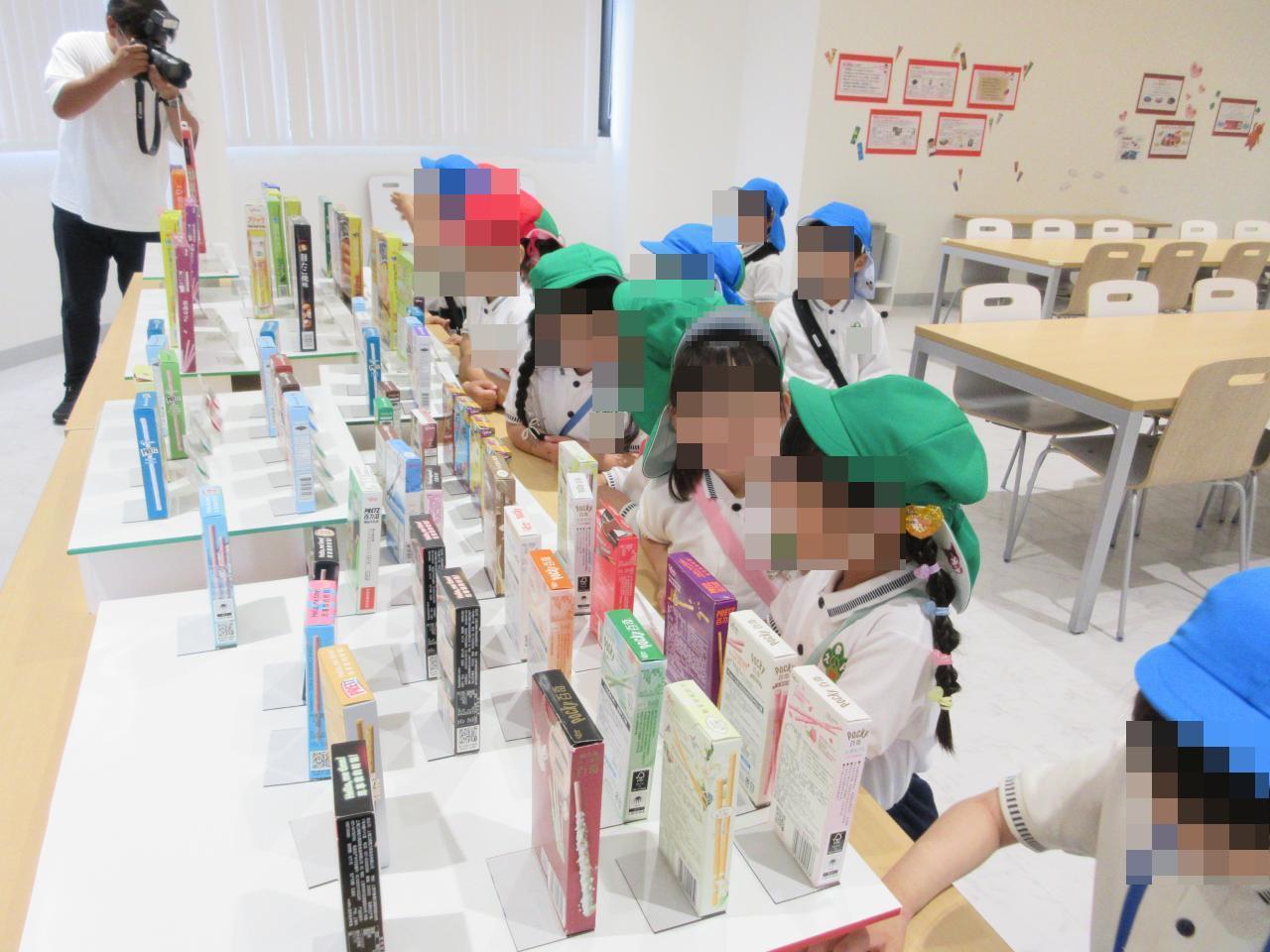 ポッキーやプリッツが出来るところをじっくりと観察することができ、「美味しそう!」「食べたいな♡」と友達と会話する姿も見られました😋