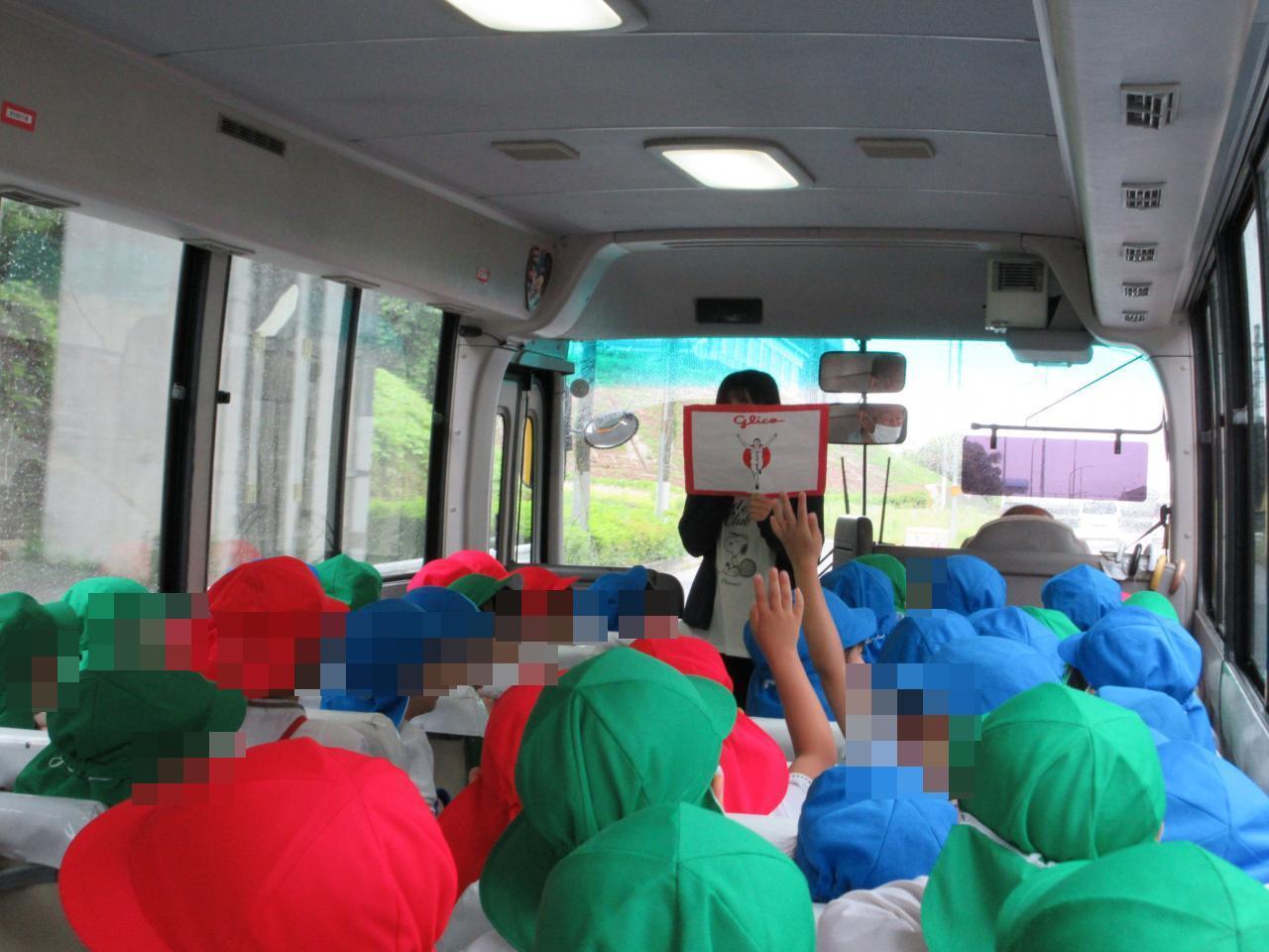 バスの中では、グリコの歴史についてお話したりクイズを行ったりし期待を高めることが出来ました🚌