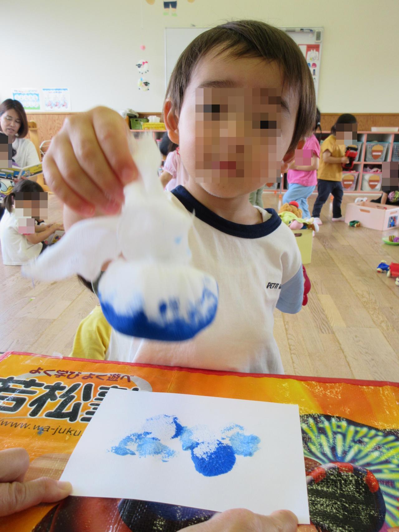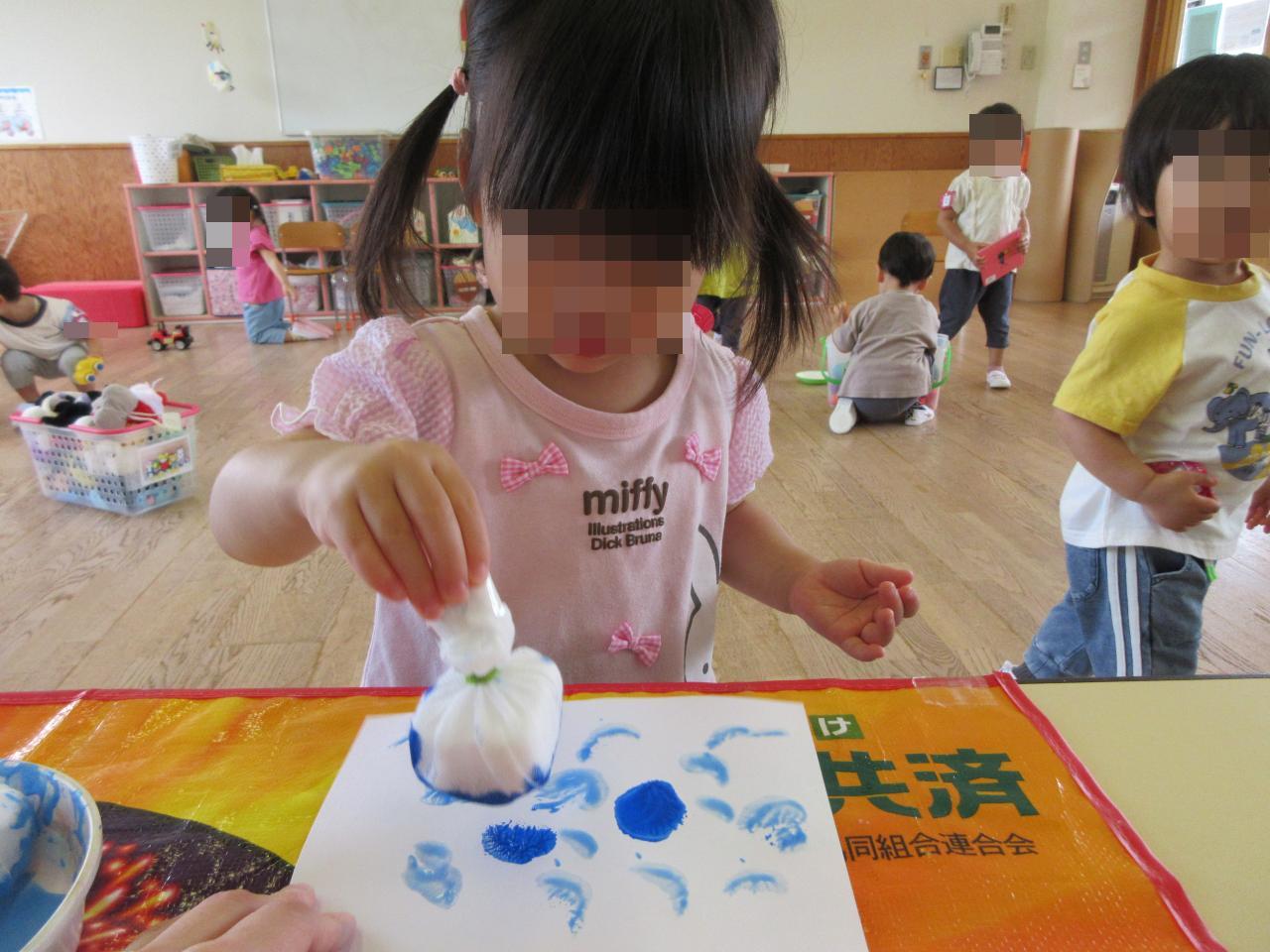 雨の絵本を読んだあとに、白い画用紙の上にたくさんの雨を降らせました☂