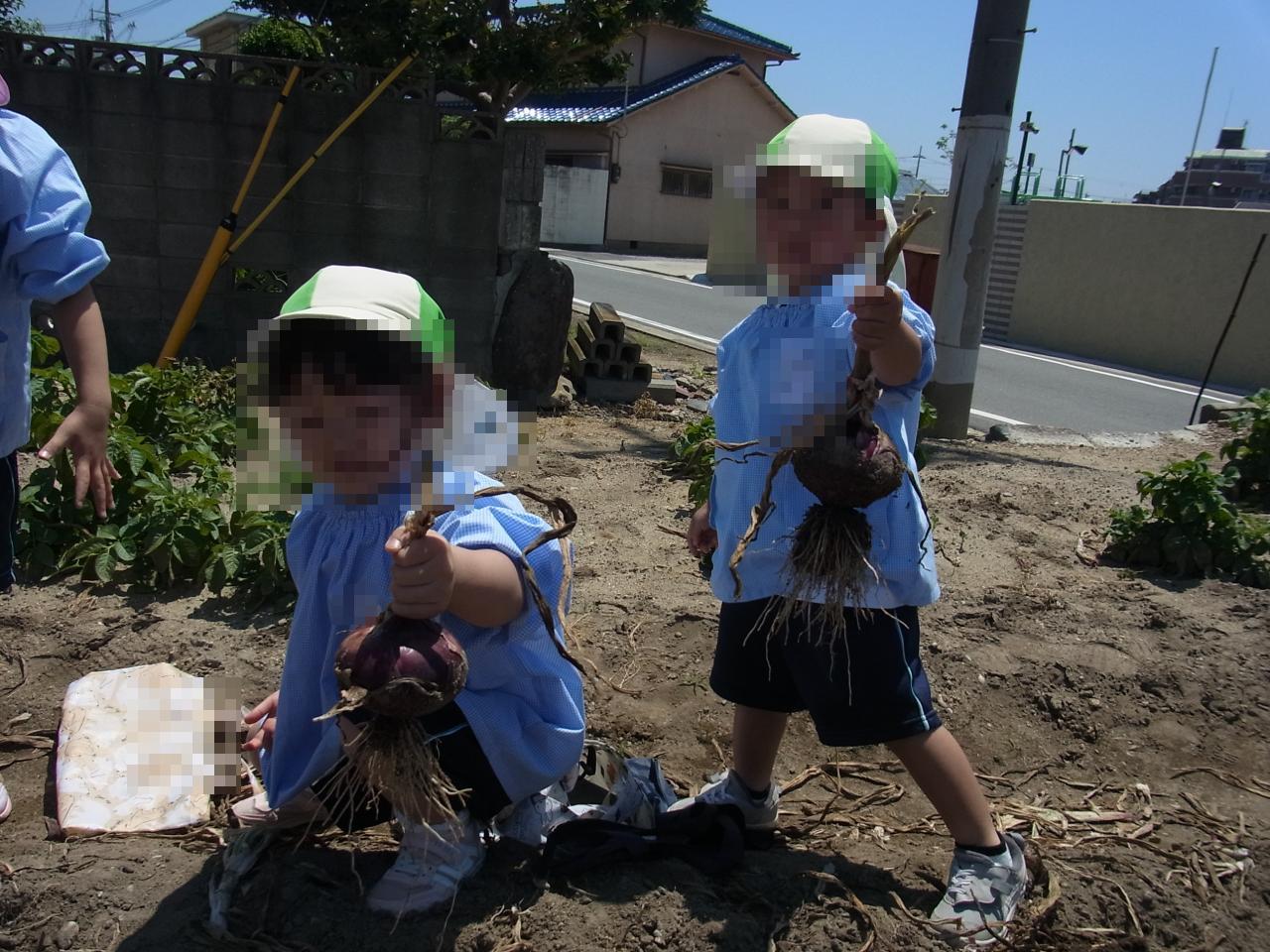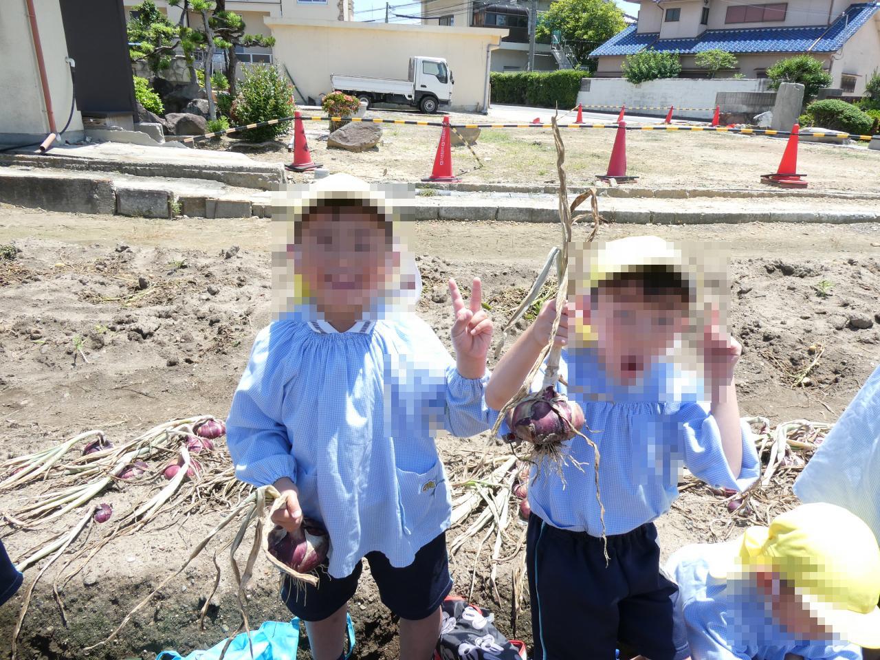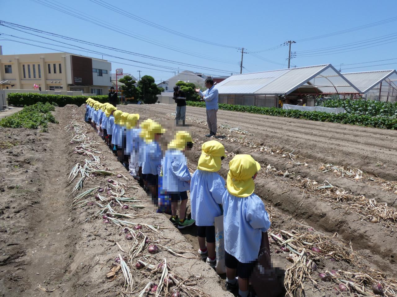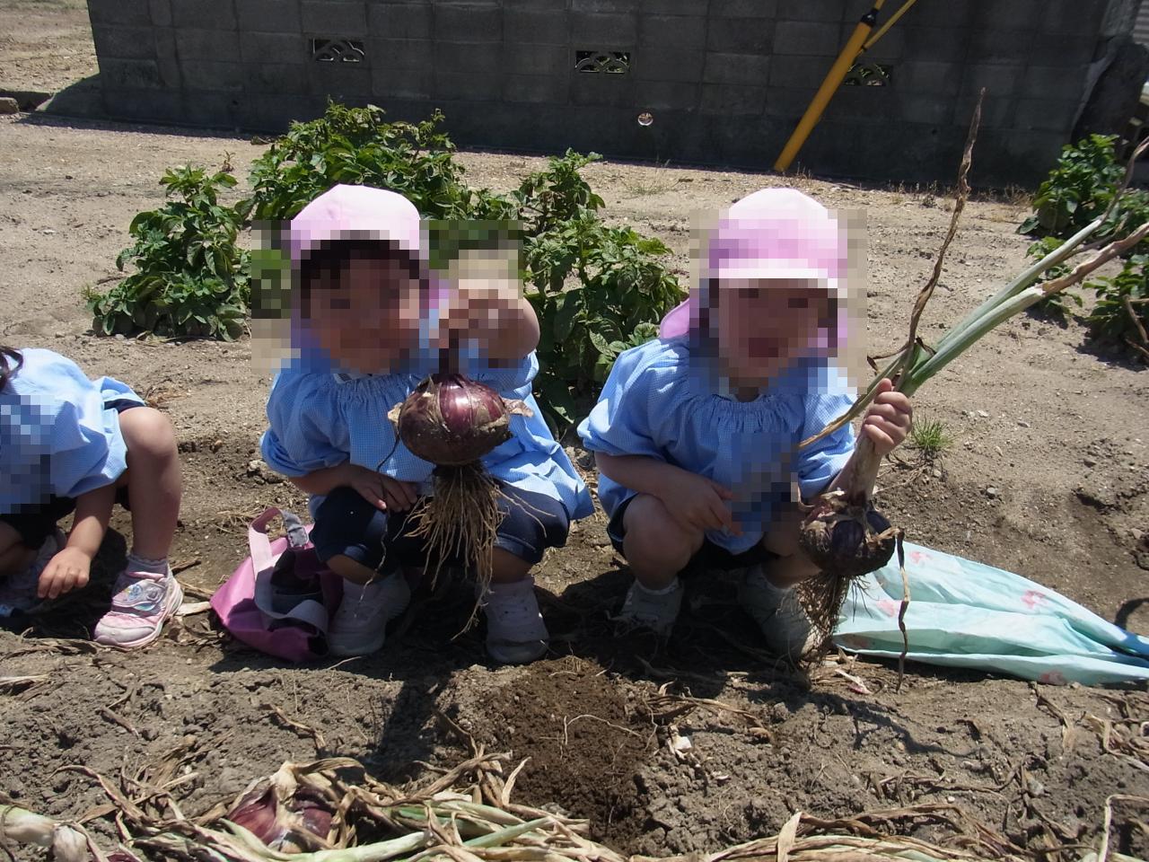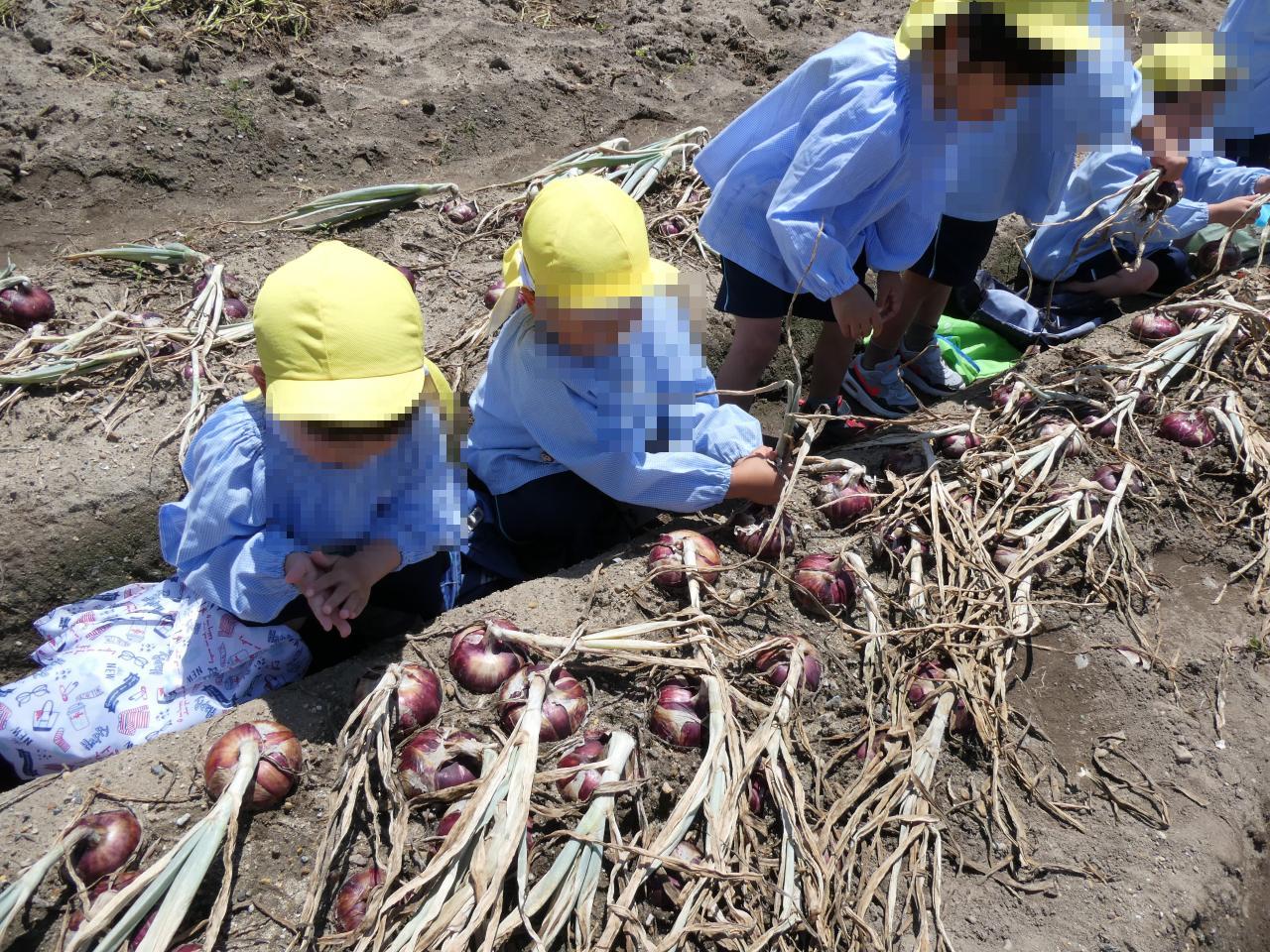 畑に着くと立派な玉ねぎに目を輝かせている子どもたち✨