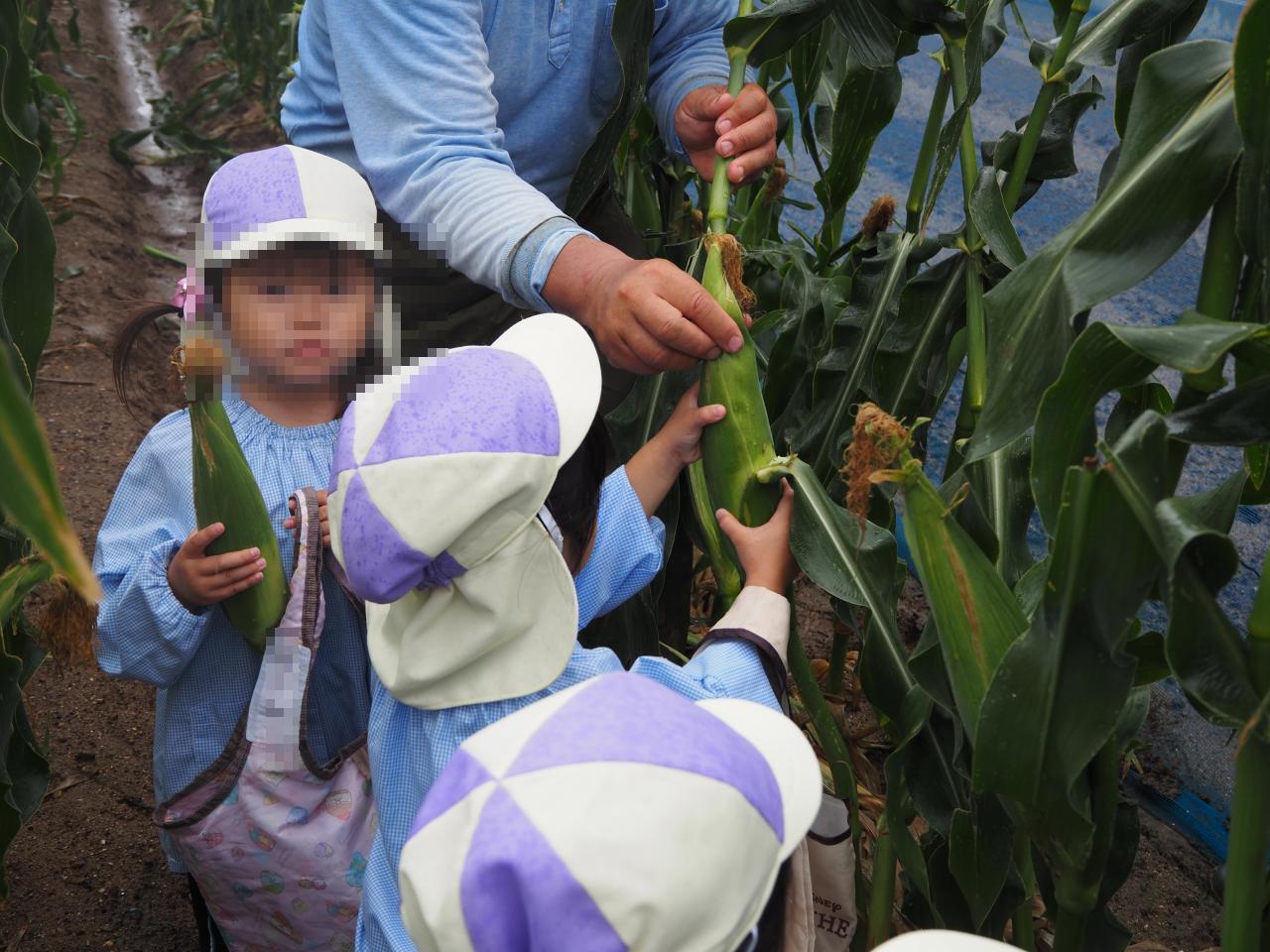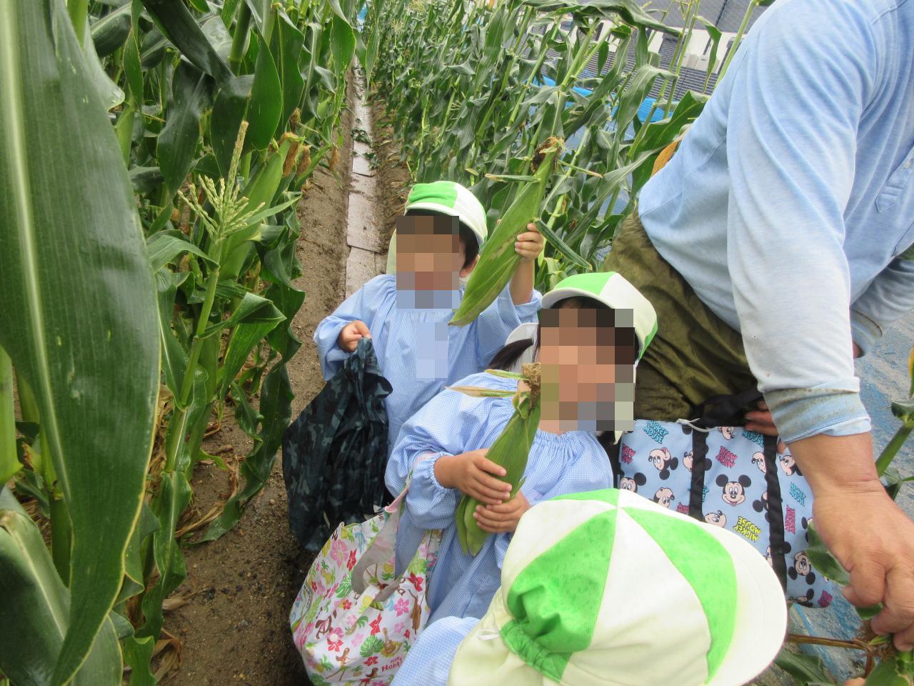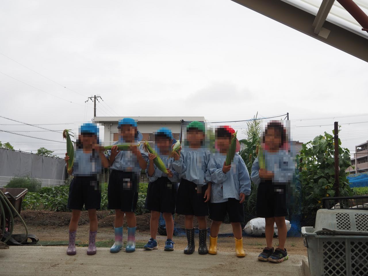 自分で採ったとうもろこしを嬉しそうに持って帰る姿が見られ、帰りのバスではどうやって食べるかみんなで相談していました😄