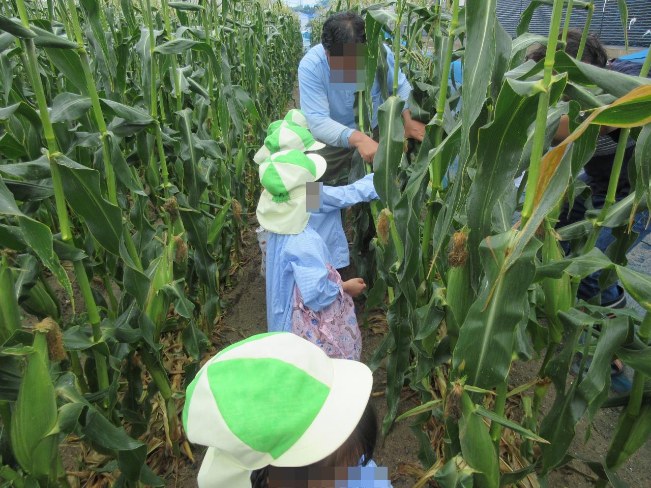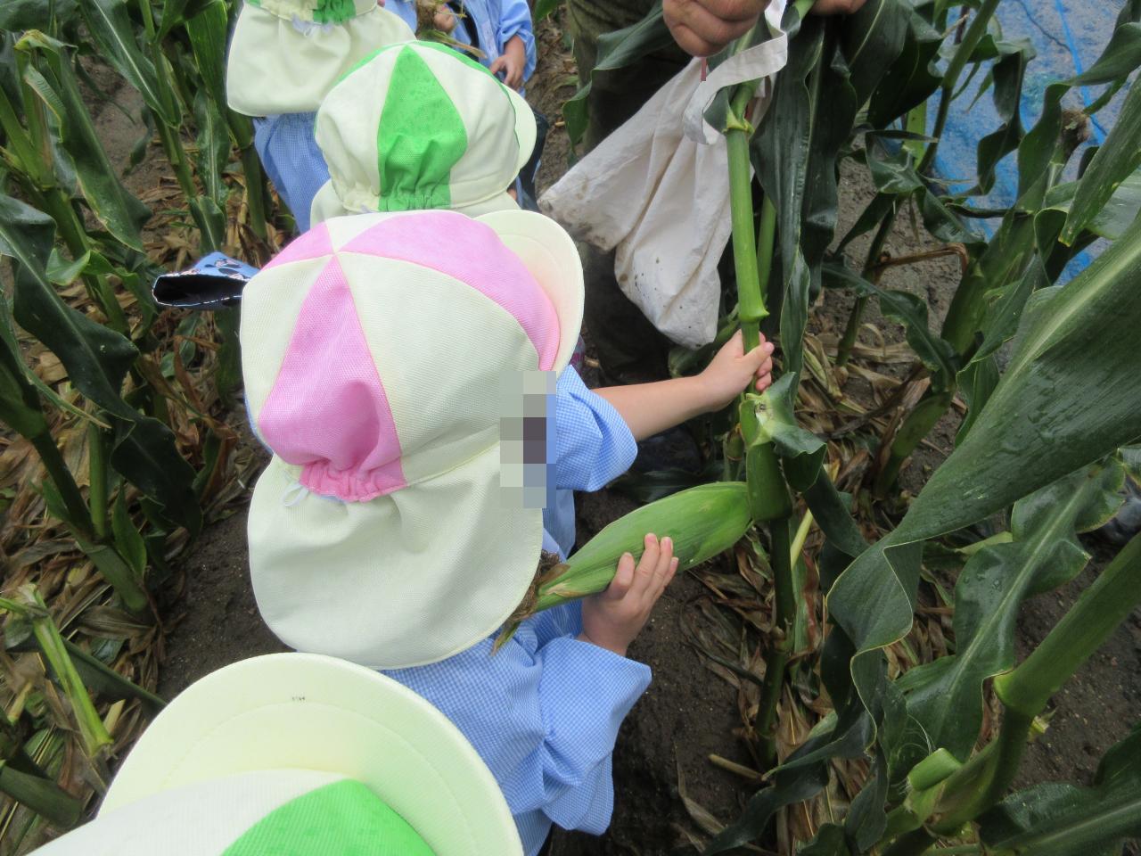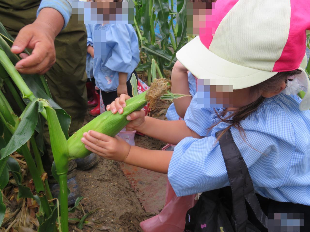自分で採ったとうもろこしを嬉しそうに持って帰る姿が見られ、帰りのバスではどうやって食べるかみんなで相談していました😄