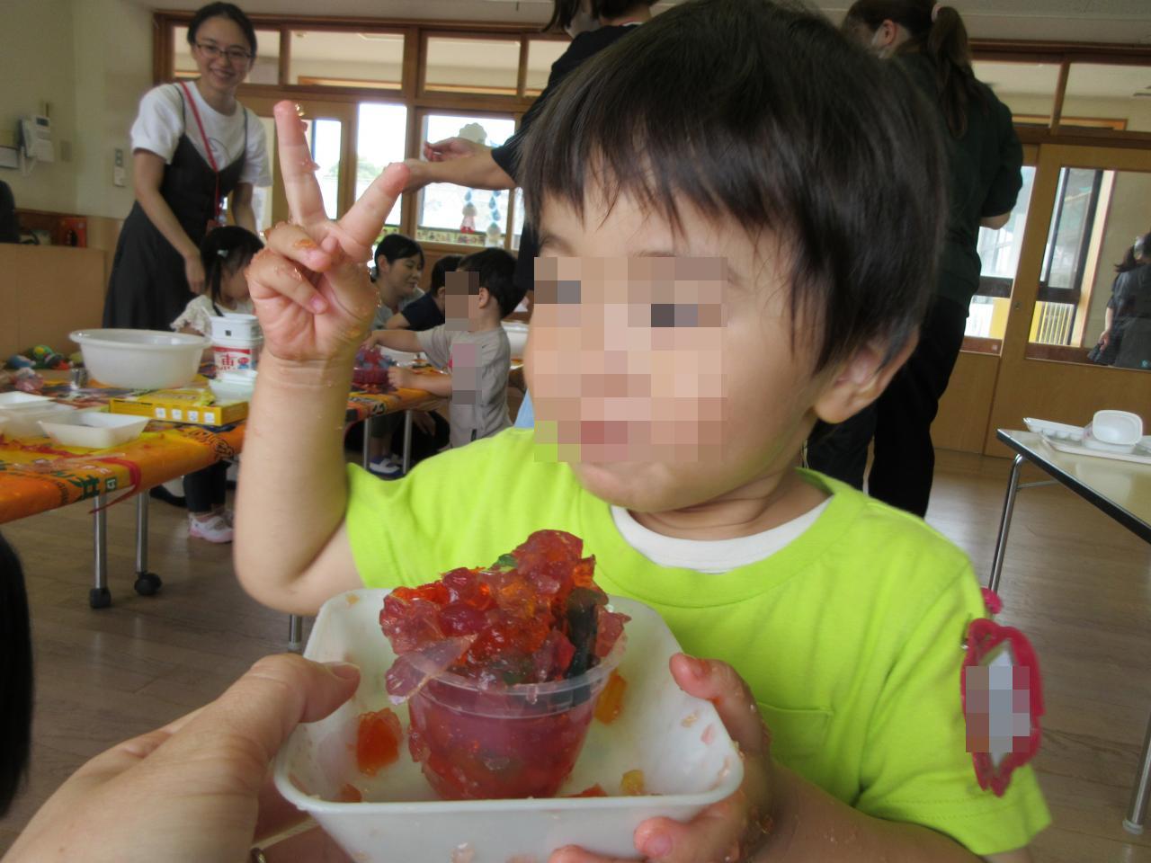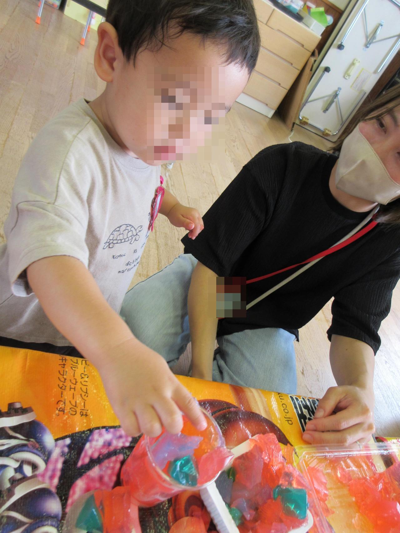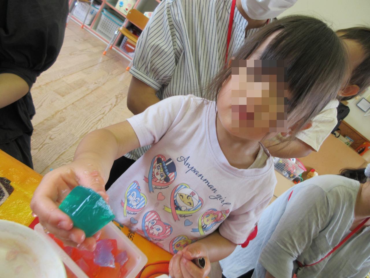 6/24(火)寒天遊びを楽しみました!冷たくて気持ちいい寒天を、型抜きしたり、混ぜたりして遊びました✨