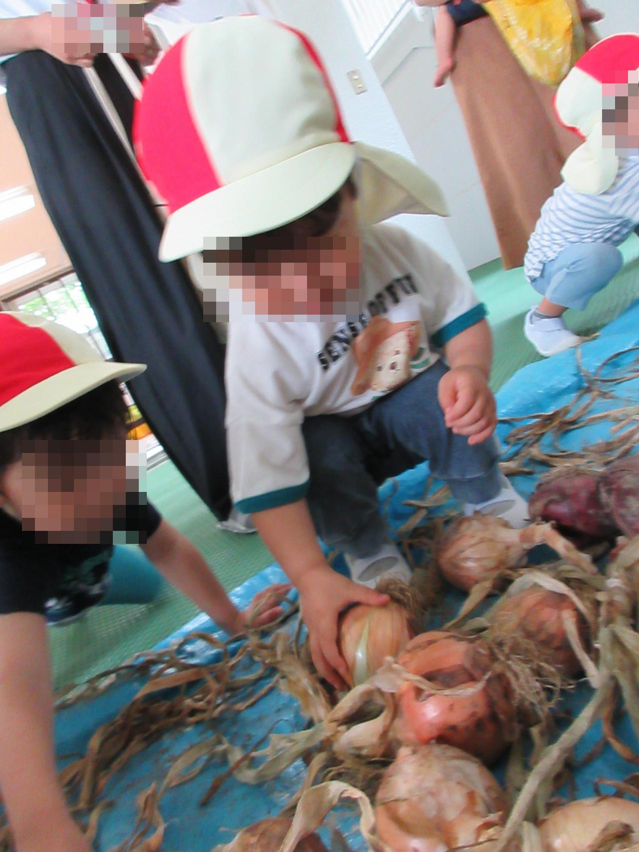 畑で穫れた玉ねぎも自分の力で袋に入れました😄