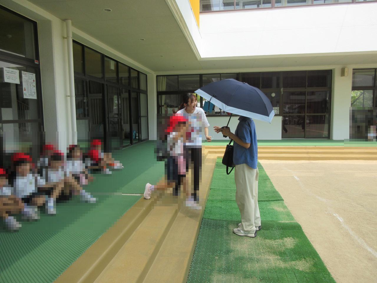 一度園庭へ避難し、約束事を確認してから保護者の方へ引き渡しを行いました❗