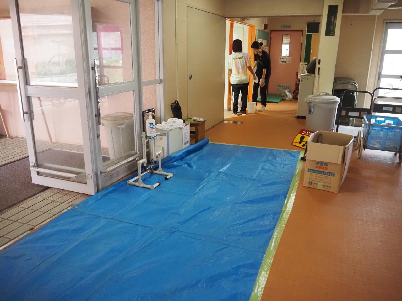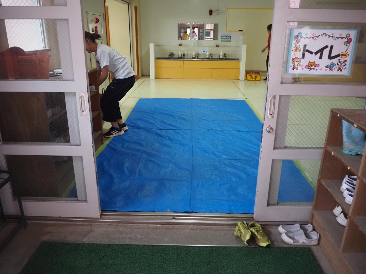 〇トイレを使用する際は、ブルーシートの上で靴を脱いでお入りください。