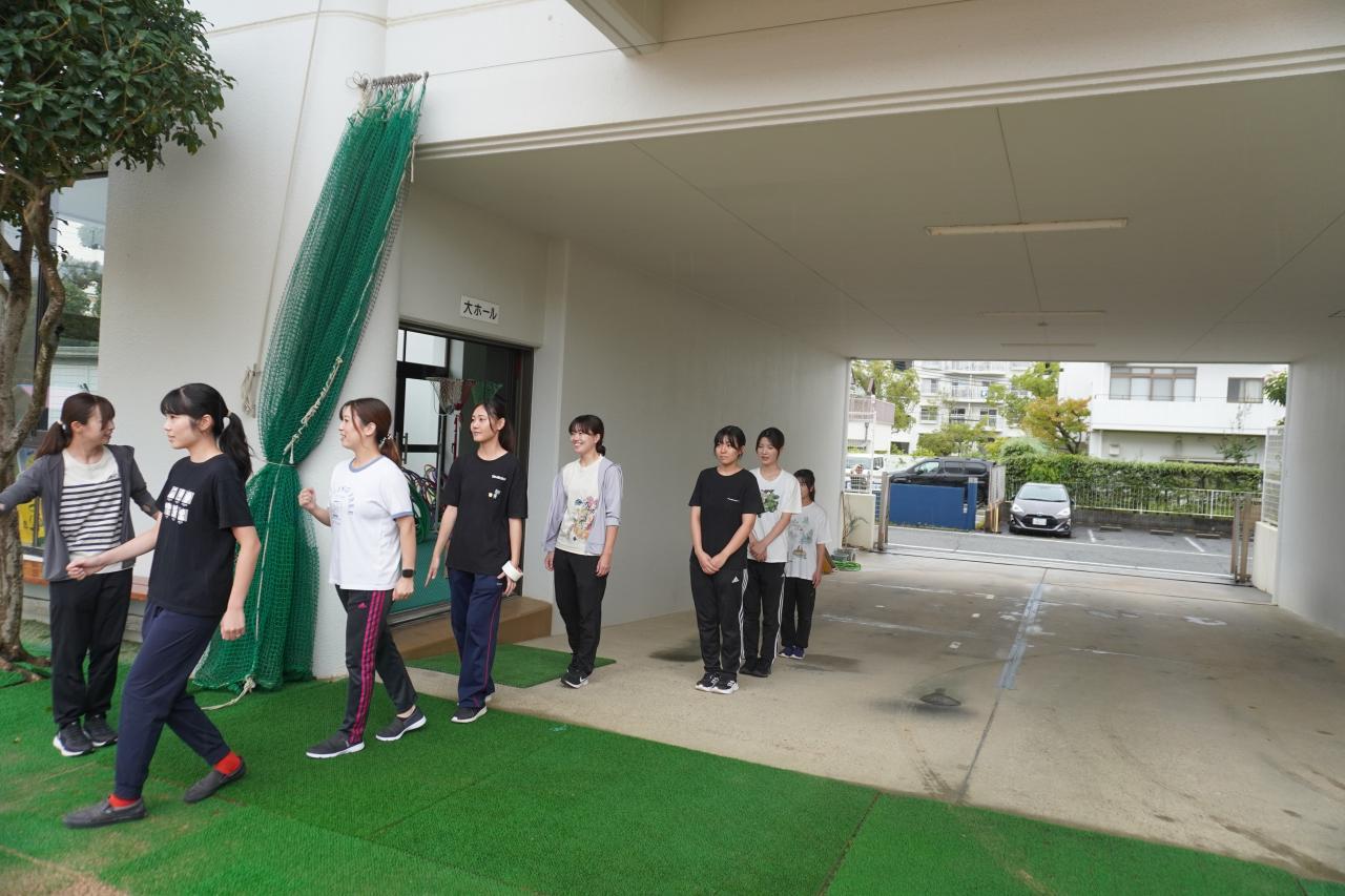 職員が1列ずつ誘導していきます。
