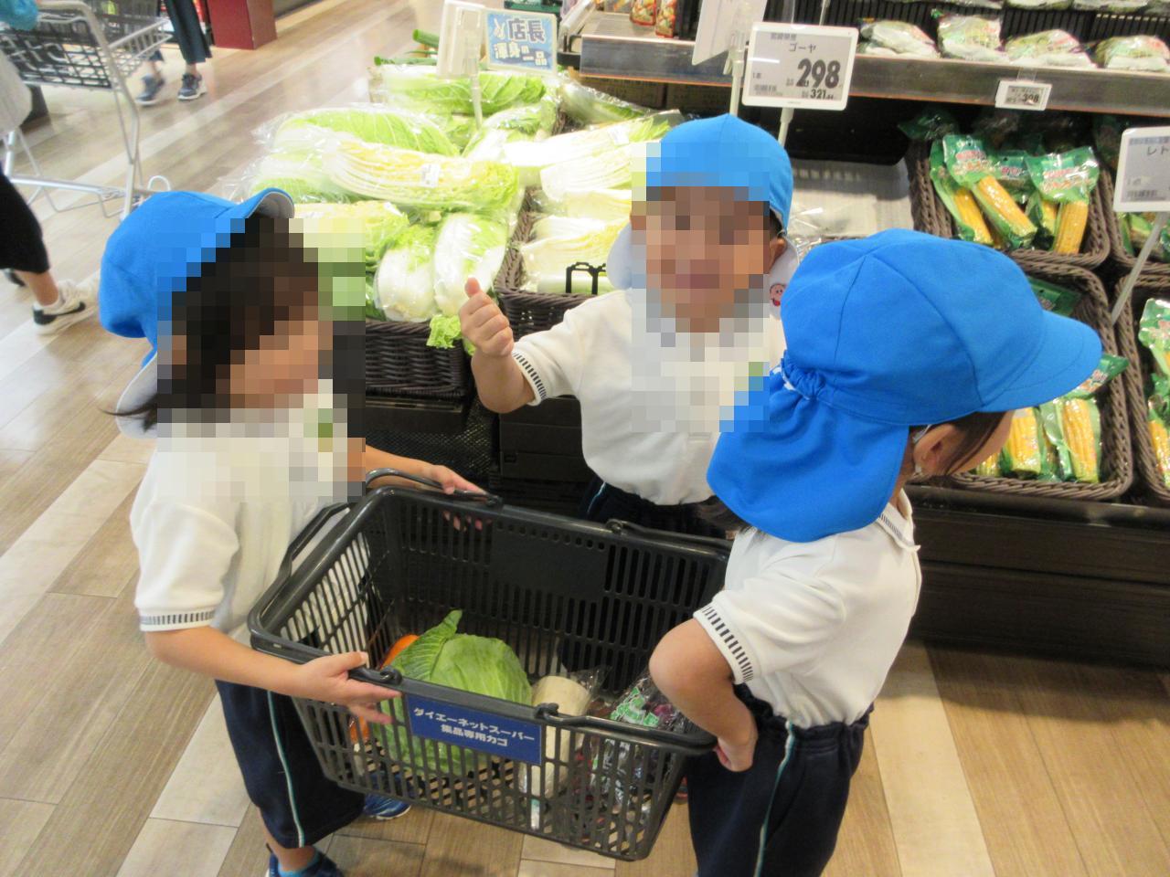 お買い物では、グループの友達と相談しながらお野菜や果物を選ぶことができました😌