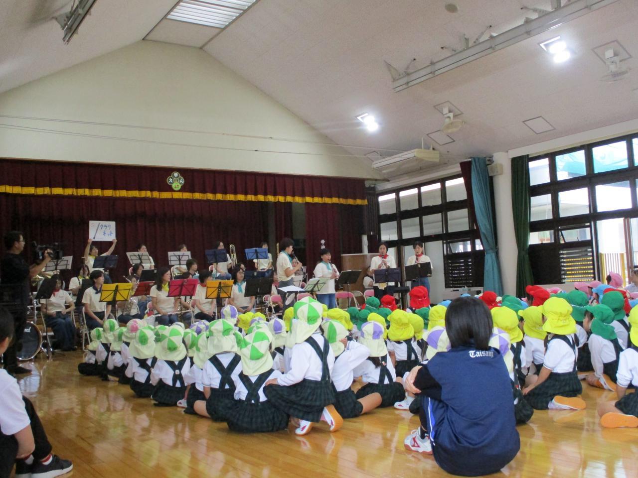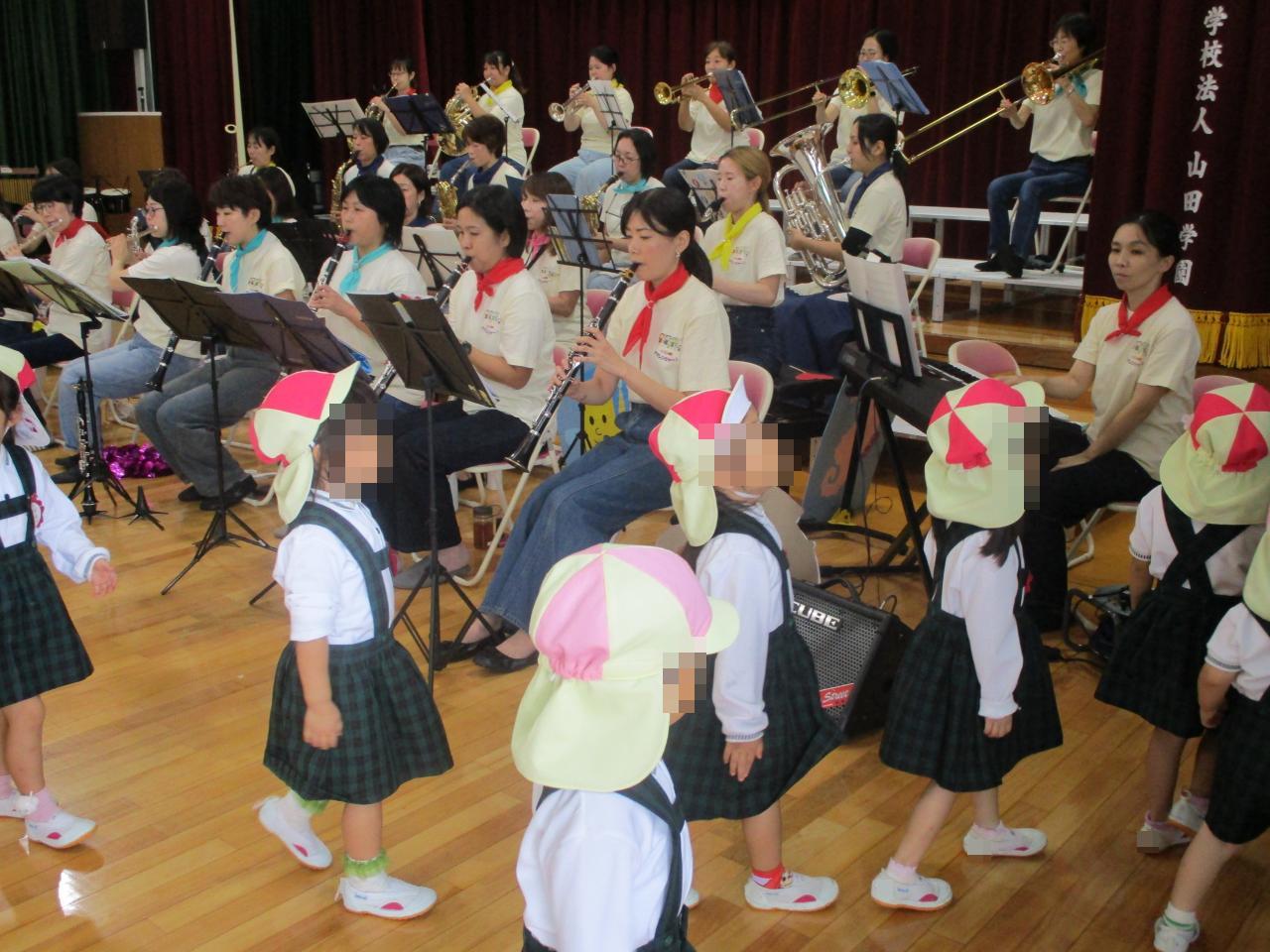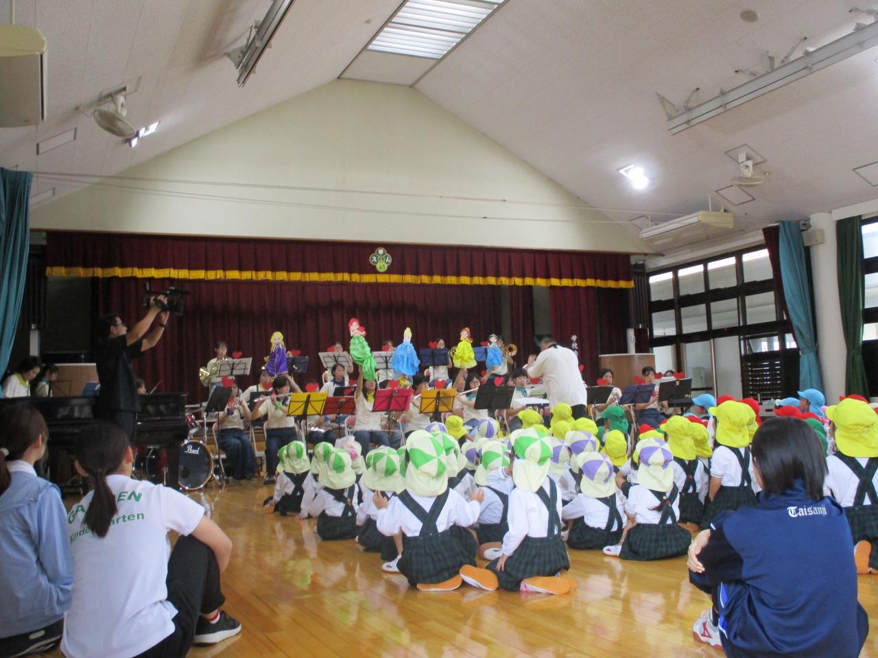 みんなが知っている曲を沢山演奏してくださり、口ずさんだり軽快なリズムに合わせて楽しく体を動かしたりと子どもたちの楽しそうな姿が見れました!