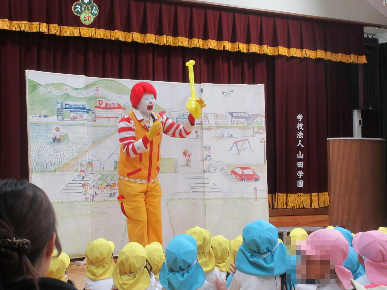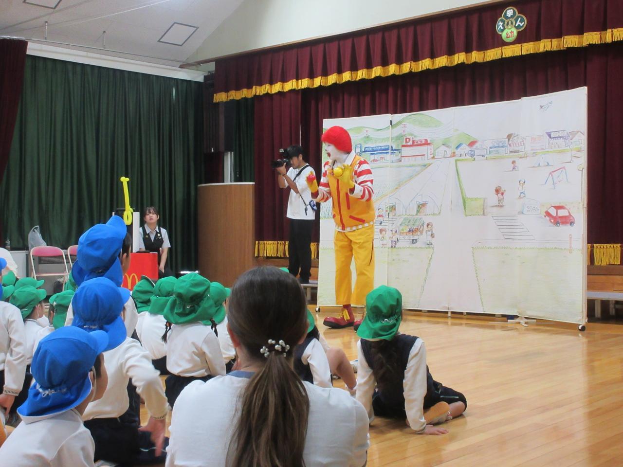 手品や、バルーン、ボールを使用しながら、横断歩道の渡り方、信号機の見方、とびだしはしないなどのお約束を教えてもらいました❗❗