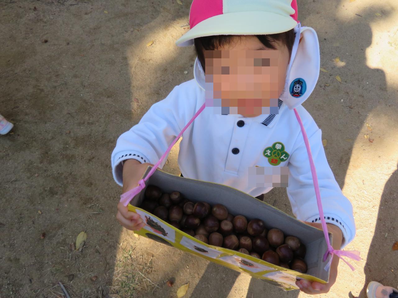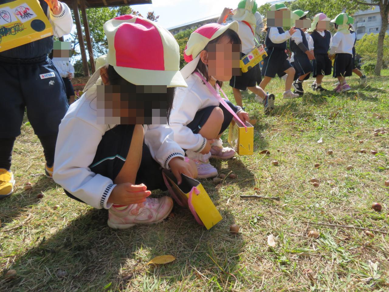 公園にはたくさんのどんぐりが落ちており、夢中になって拾う子どもたち👀✨