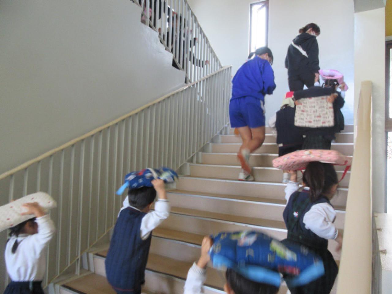 帰る準備をしているときにサイレンが鳴りましたが、すぐに動きを止め座布団で身を守る子どもたち✨