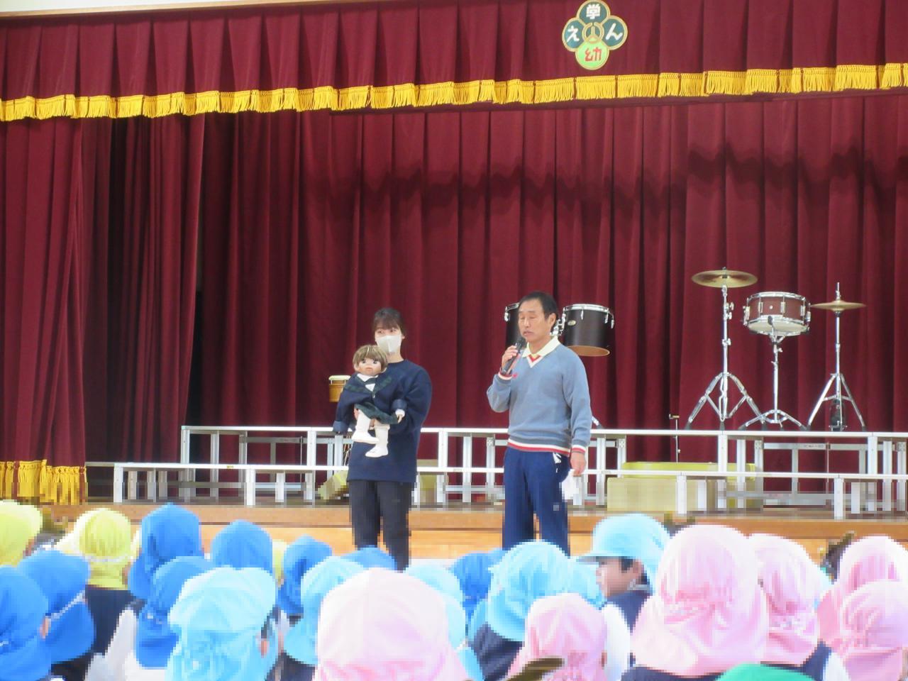 園長先生からはインフルエンザが流行っているので、元気に過ごせるよう消毒や手洗いの大切さについてのお話がありました✨