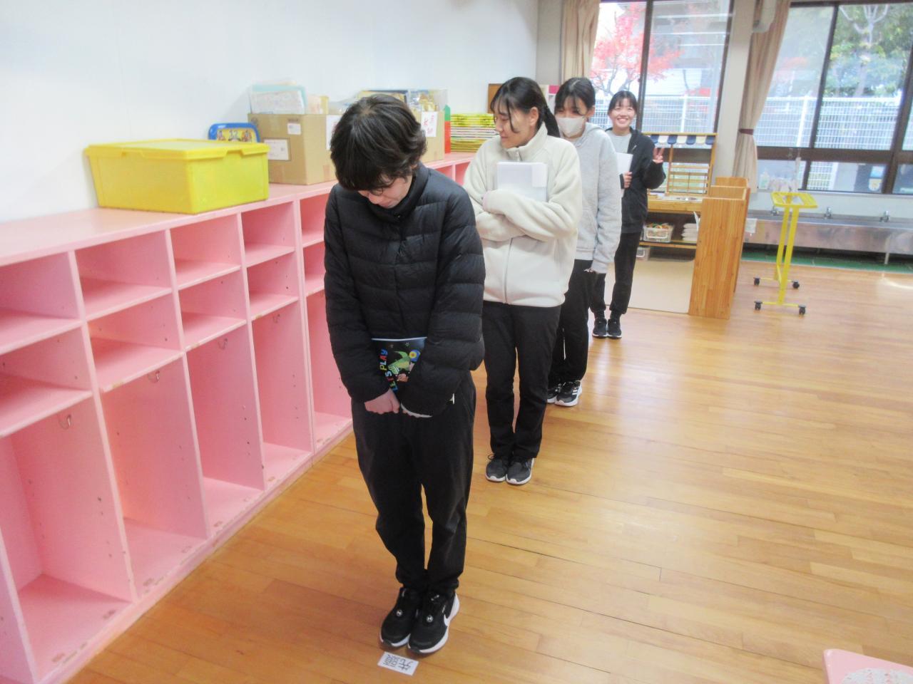 降園後は、次のクラスが出演し、ビデオ撮影をしておりますのでお静かに、速やかに降園して頂きますようお願いいたします。