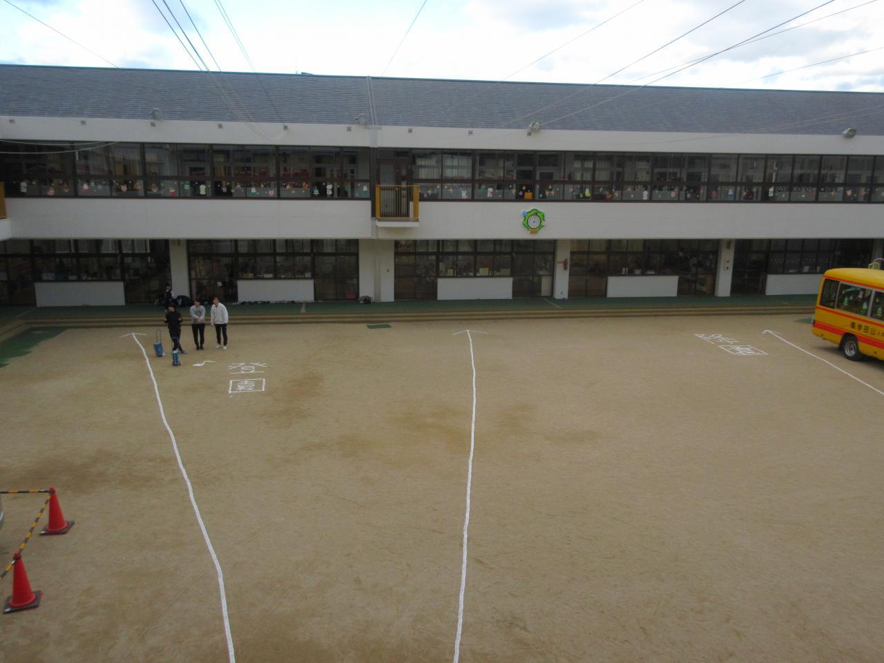 その後、バス車庫にてクラスごとにお並び下さい。