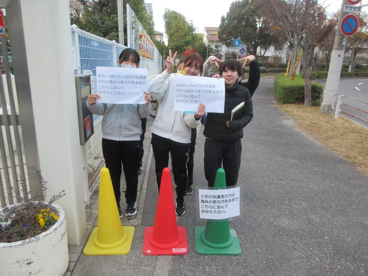 登園時間になりましたら、子どもたちは登園部屋に行きますので、お並びの場所から子どもたちを登園させて下さい。