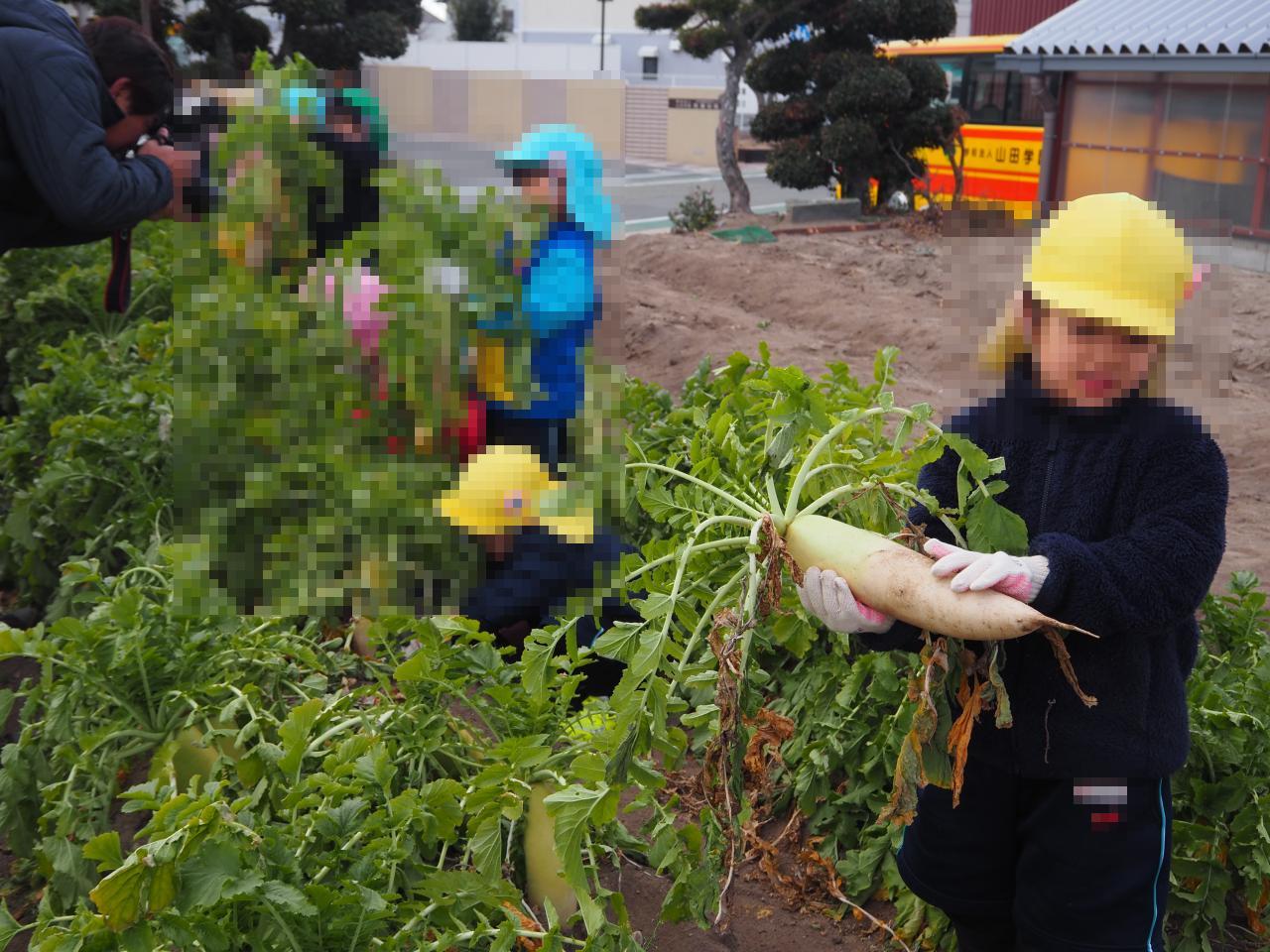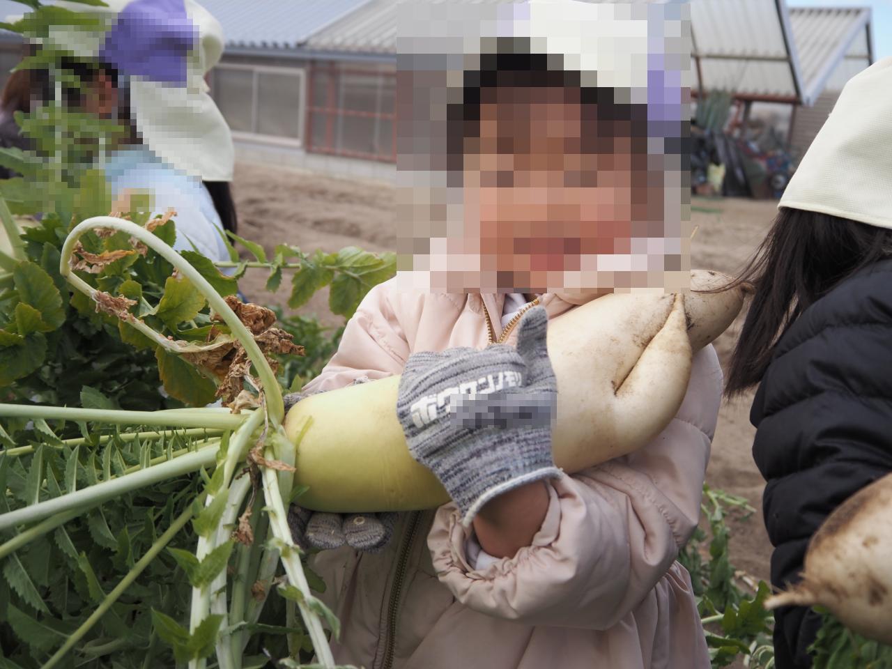 子ども達の元気パワーで良い天気に恵まれ、大根収穫に行くことができました😀