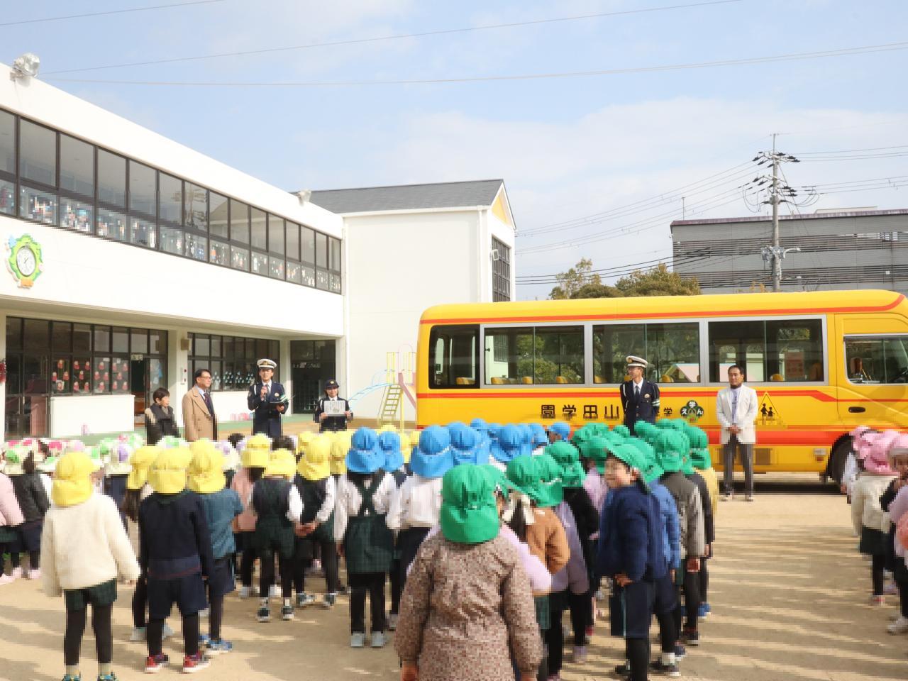 昨日は幼稚園に警察の方が交通安全啓発マグネットシートを届けに来てくれました😄