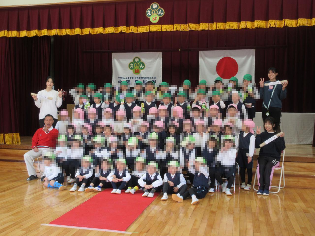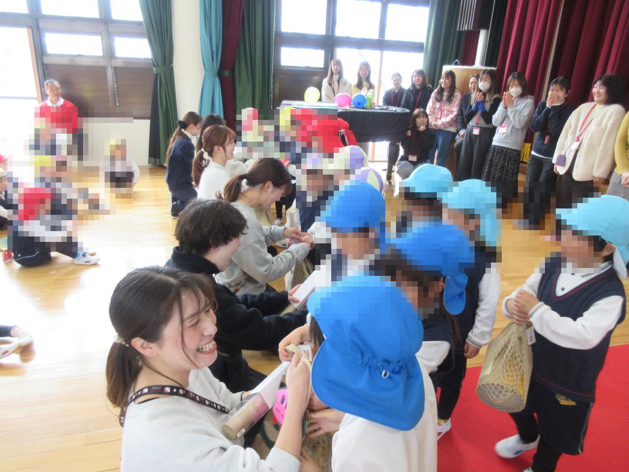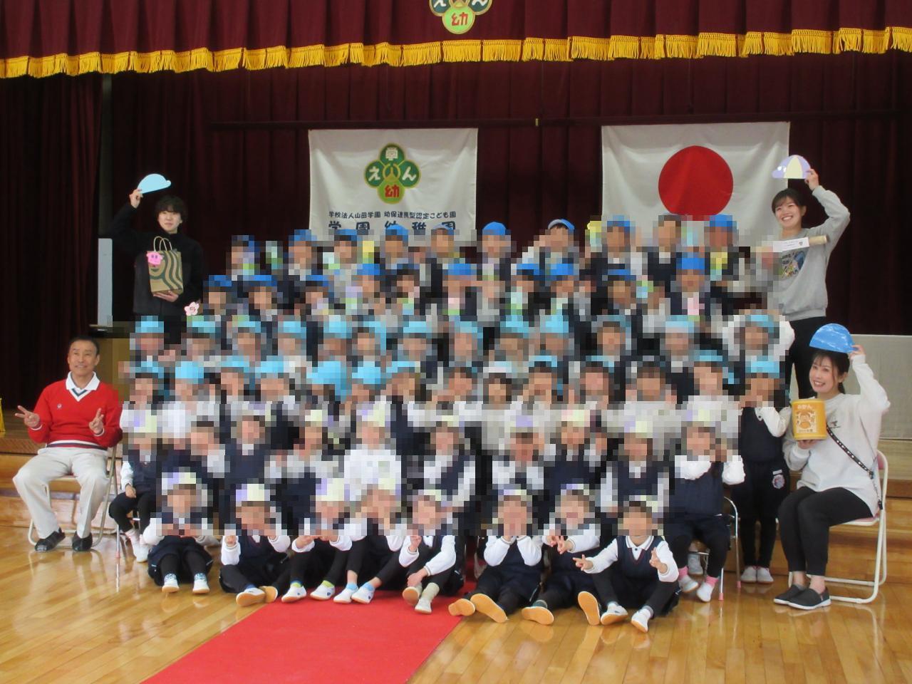 そのあとは、年長さんに言葉のプレゼントと年少さん、年中さんが力を合わせて作った素敵なお花のプレゼントをしました😄