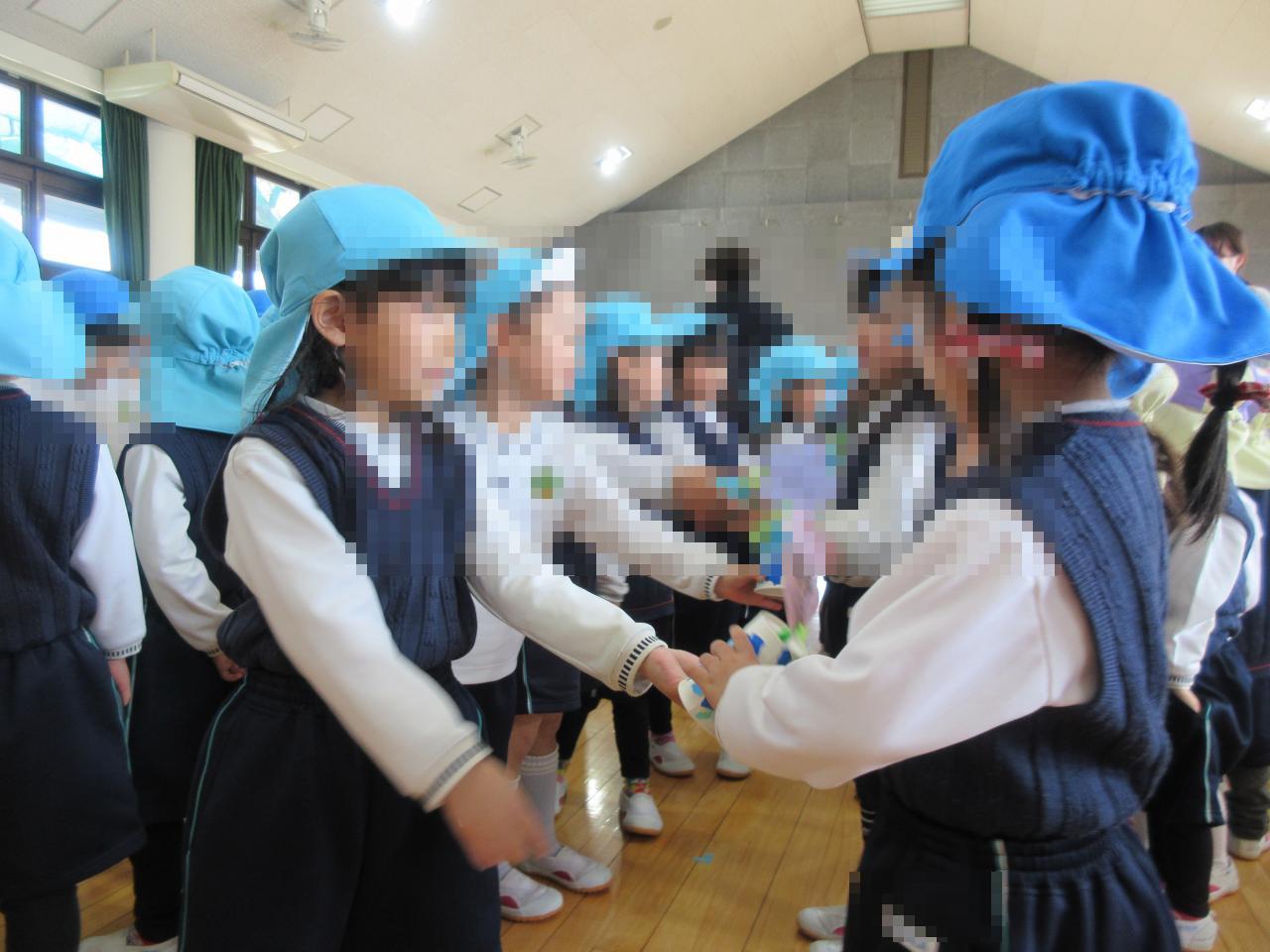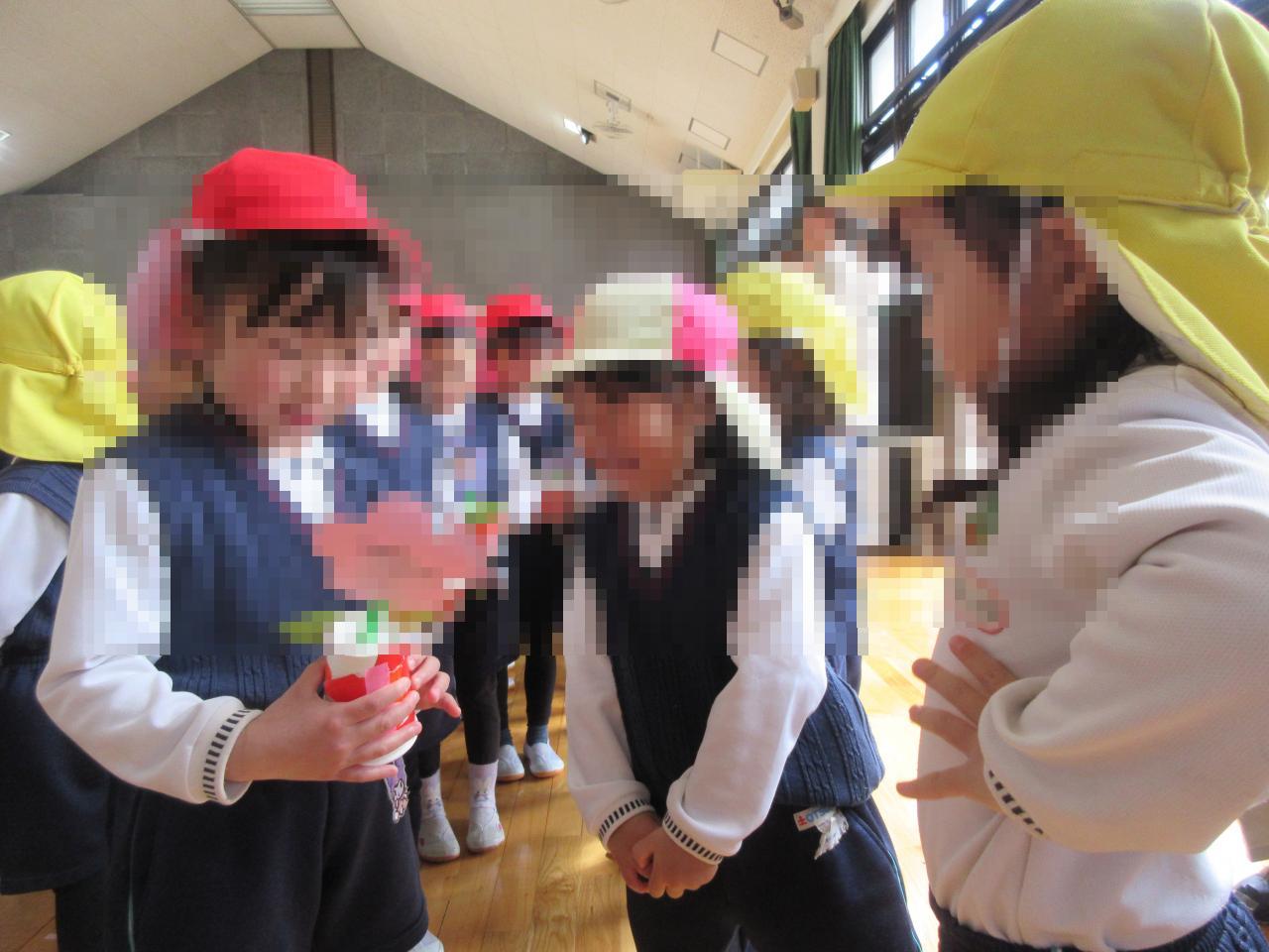 ご協力ありがとうございました。茶封筒は来年度も再利用しますので、明日、年長、年少は手提げかばん、年中はカバンに入れて返却をお願い致します。