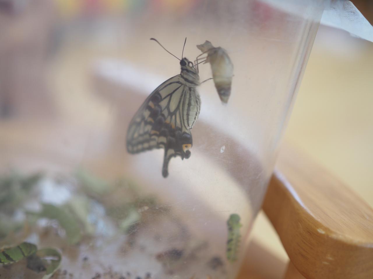 幼虫や蝶になりきってお部屋を動き回ったり、蝶に話しかけたりする姿がとってもかわいかったです💕