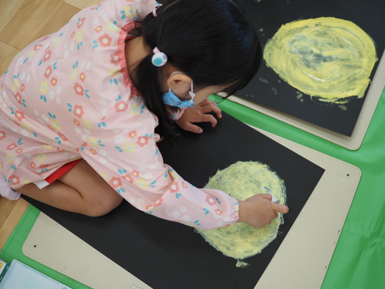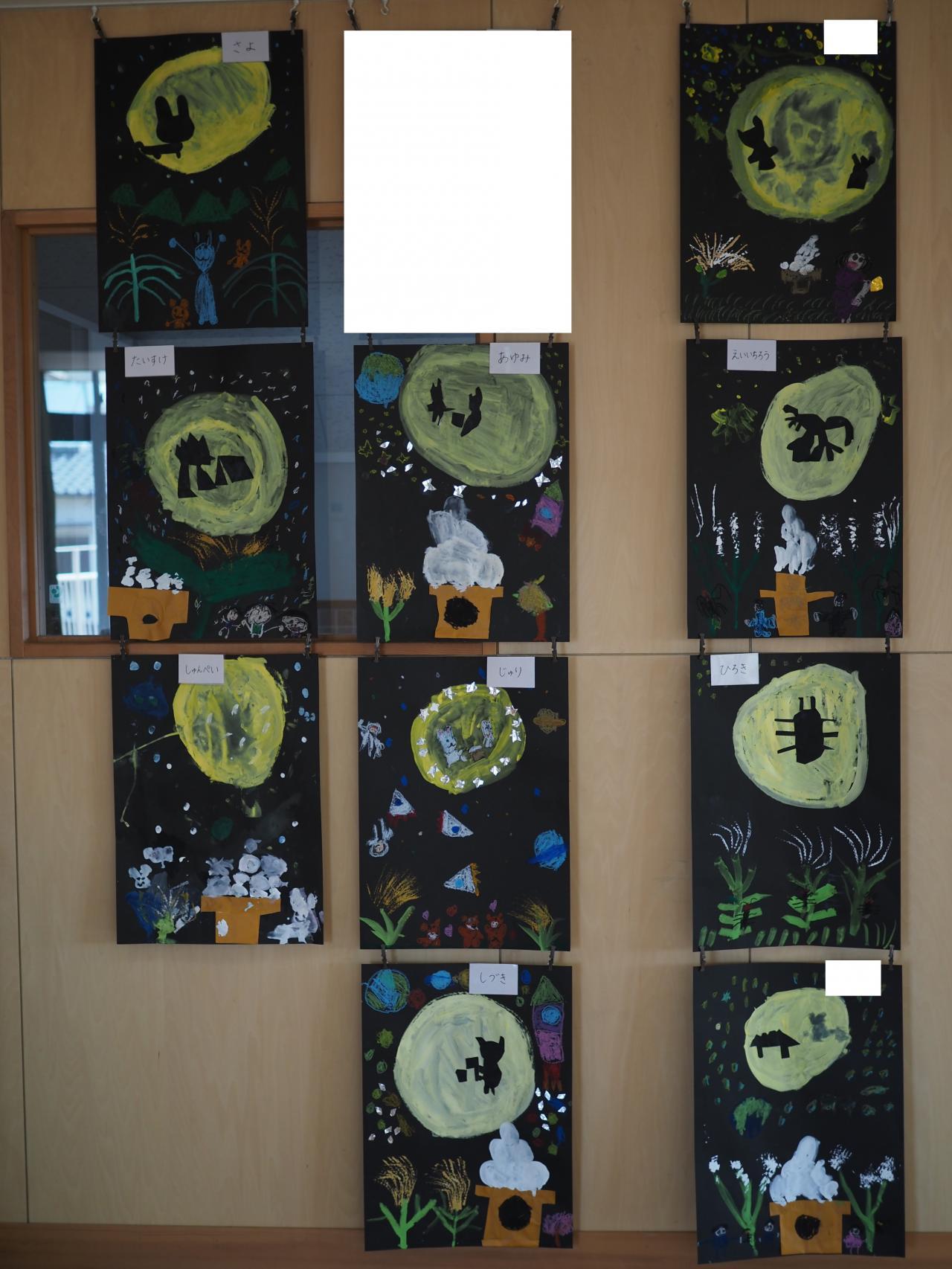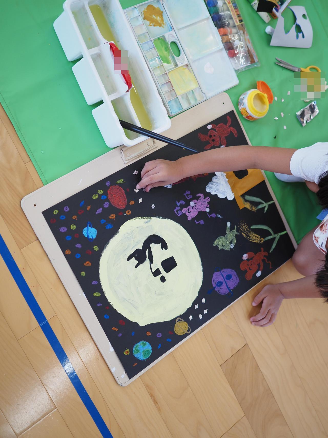 子どもたちは月の中に何が見えるか想像を膨らませて、動物を作ったり、自分を描いたり楽しんで取り組みました🌝