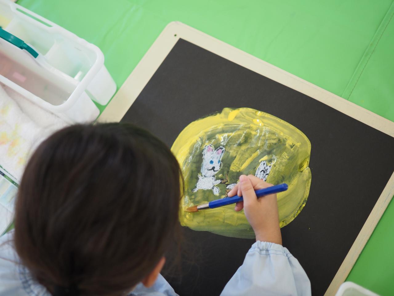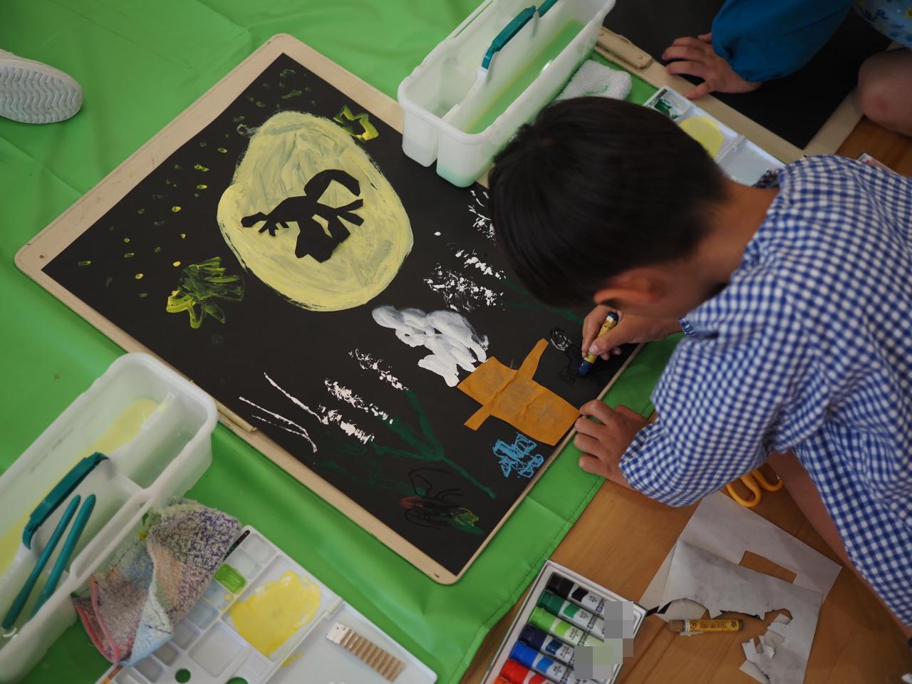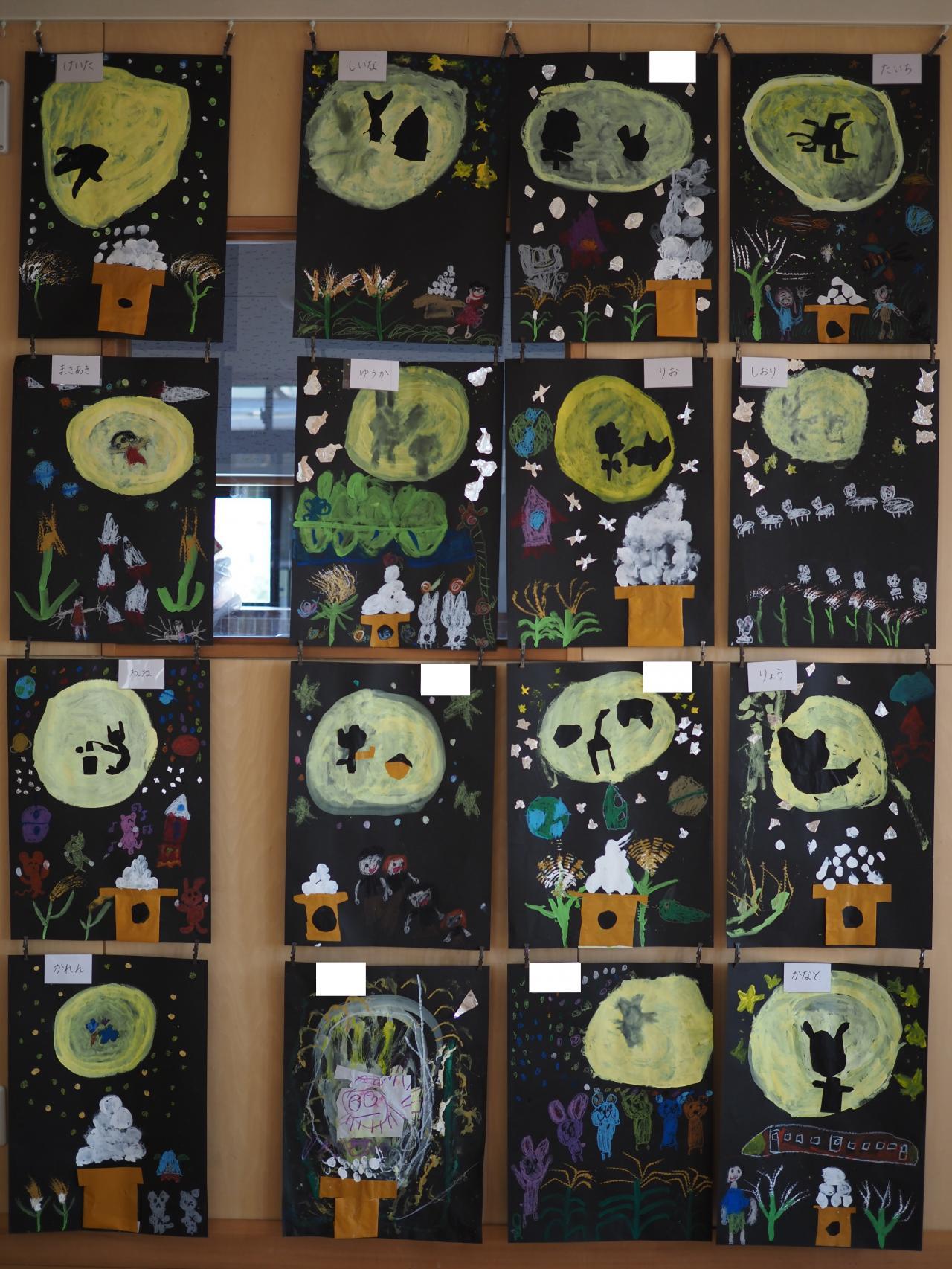 子どもたちは月の中に何が見えるか想像を膨らませて、動物を作ったり、自分を描いたり楽しんで取り組みました🌝