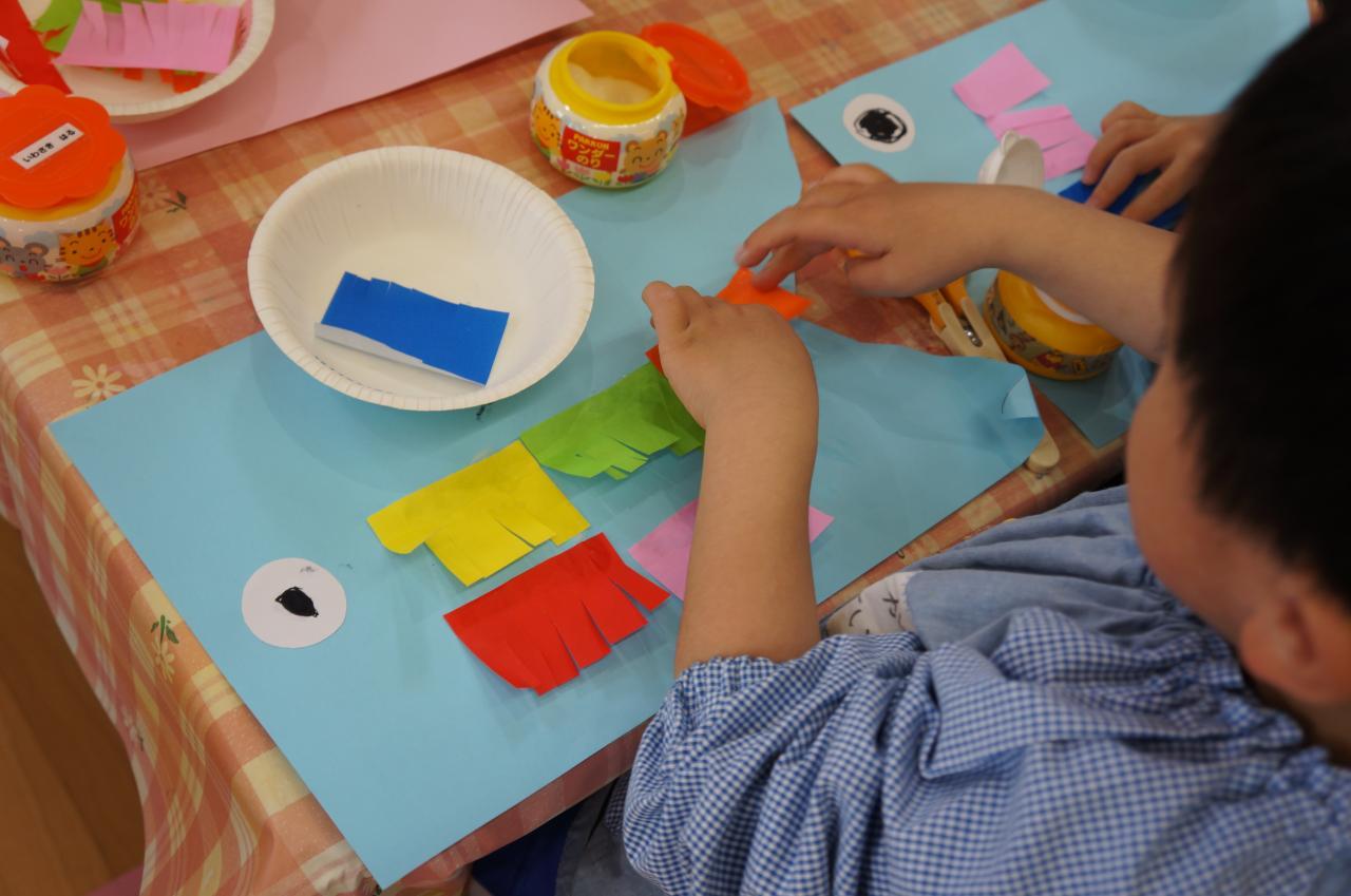 もも組さんはこいのぼりの製作をしました。