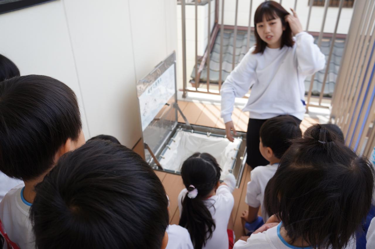 災害が起きた時に滑る滑り台、最初はみんなドキドキでした。