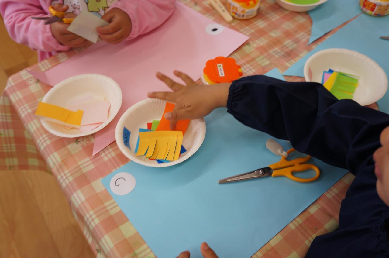 切ったうろこをのりで貼ってでき上がりです。