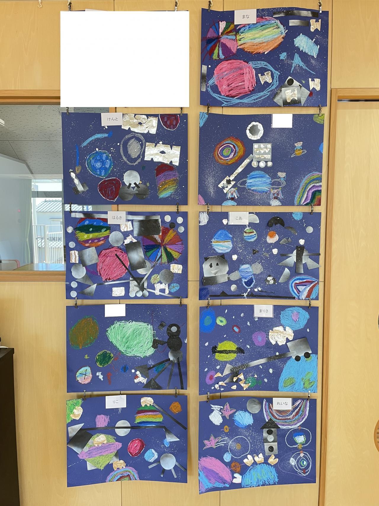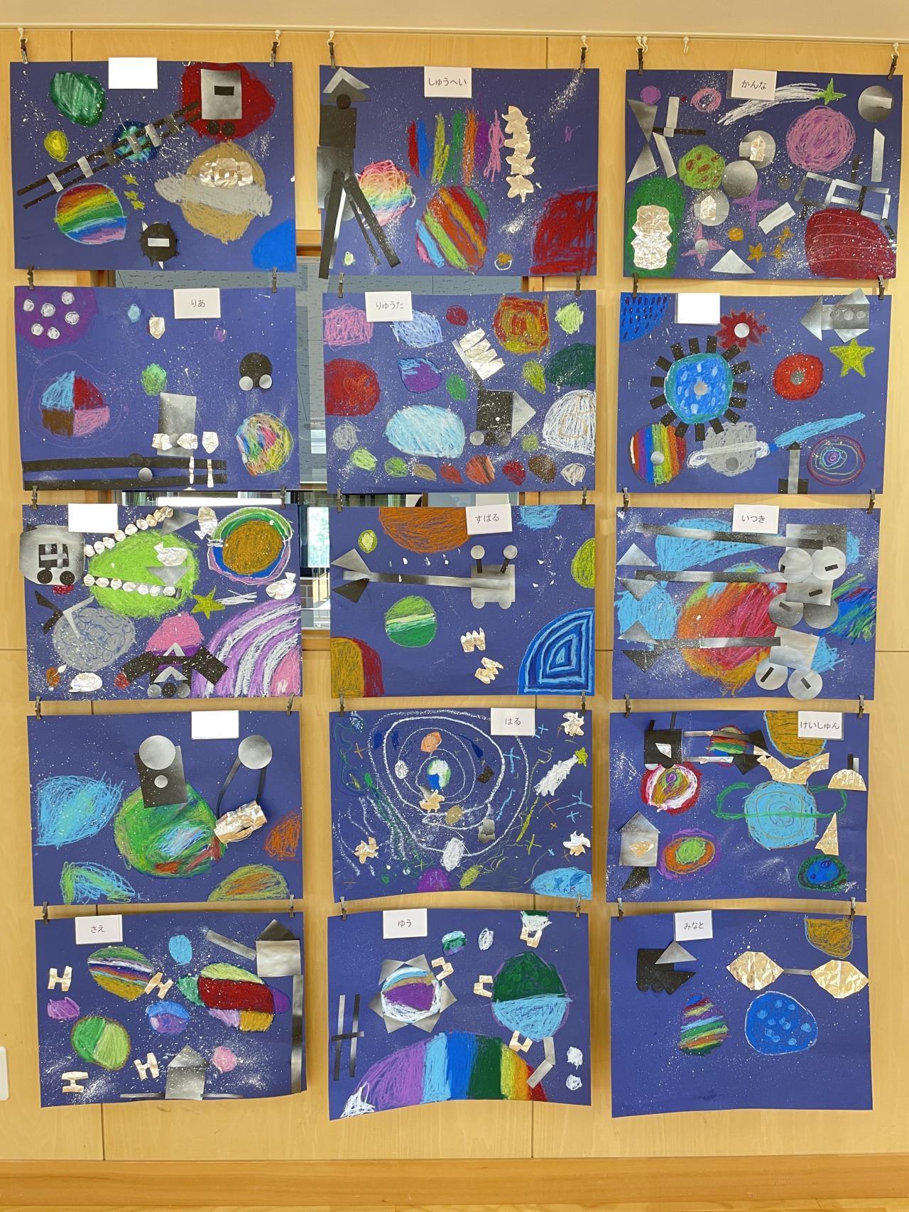 7月5日(金)に行われた絵画では、「宇宙」をテーマにクレパスを使って絵を描きました。
